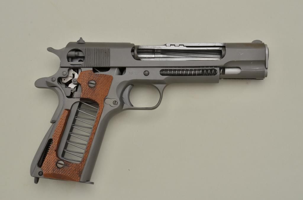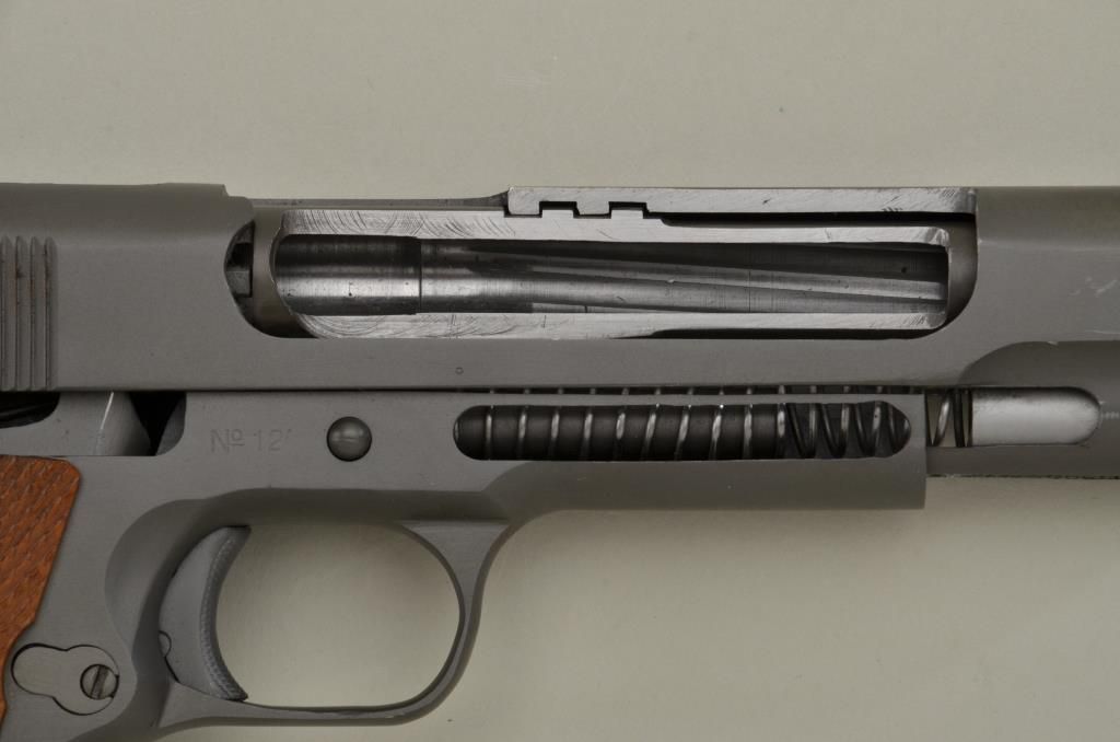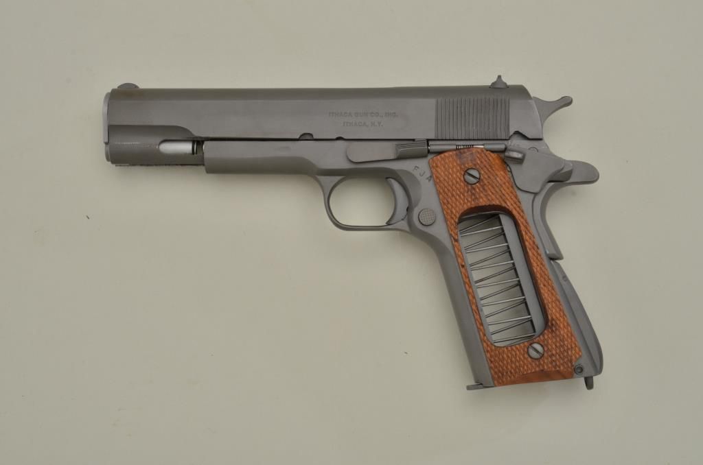 Ithaca Model 1911-A1 semi-auto pistol, CUT-A-WAY, .45 cal., 5” barrel, parkerized finish, checkered