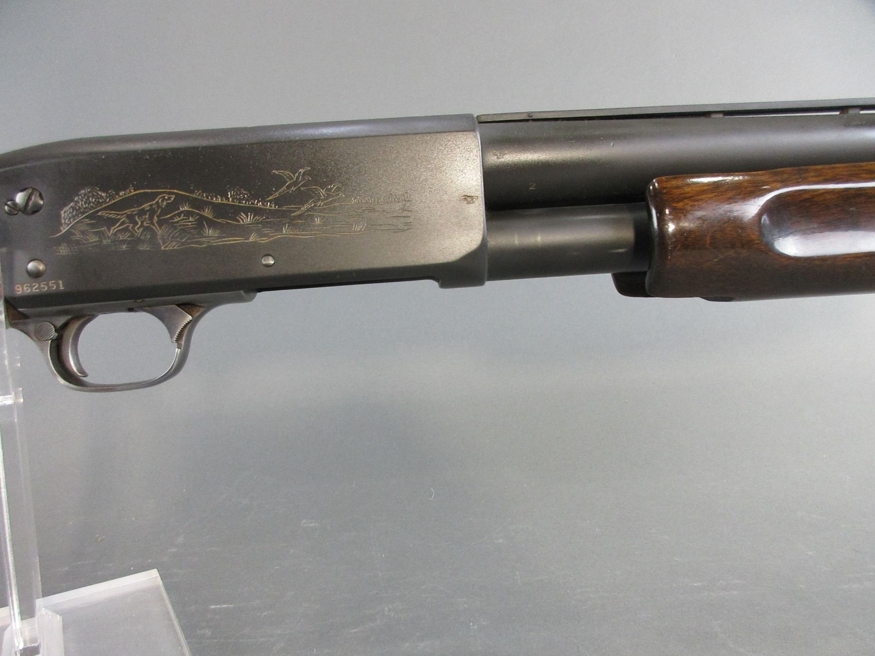 Ithaca Model 37 Featherlight Pump Action Shotgun- 12ga- 28" Ventilated Ribbed Barrel- Engraved- Checkered- Modified- Very Good Condition- #962551