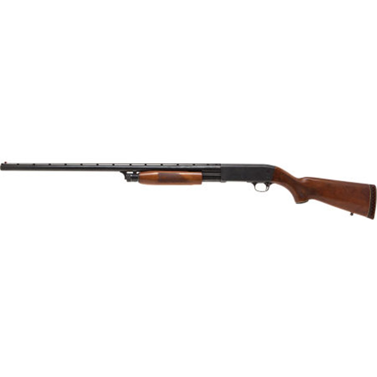 Ithaca Model 37 Slide Action Shotgun. Serial no. 371574783, 12 gauge, 2 3/4-inch chamber, modified choke. 28-inch barrel with elevated rib and florescent front sight. Blued finish. Sides of frame with game bird scenes. Varnished press-checkered walnut stock and fore-end. Sling eyes. Condition: Very good to fine. Retaining approximately 95-99% finish with scattered light handling and storage wear. Wood with minor scratches and marks. Action good. Bore shows some wear.NRA FIREARMS FOR FREEDOM PROGRAM