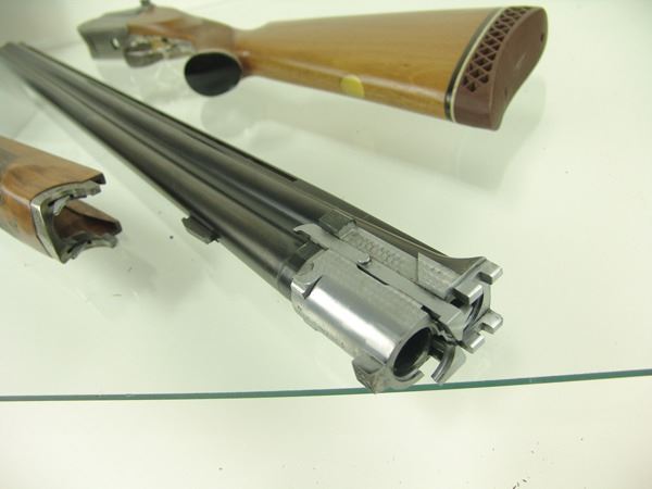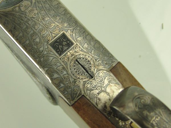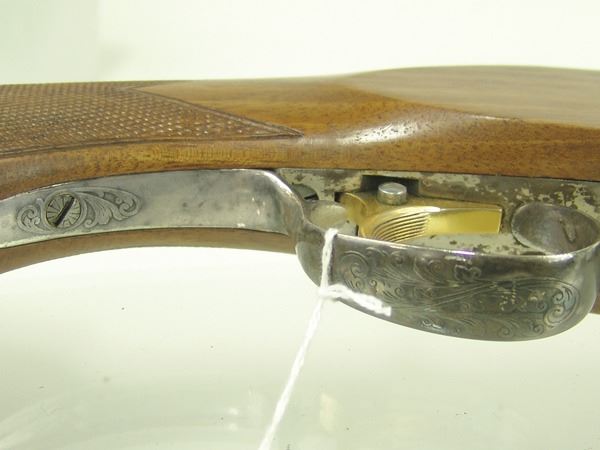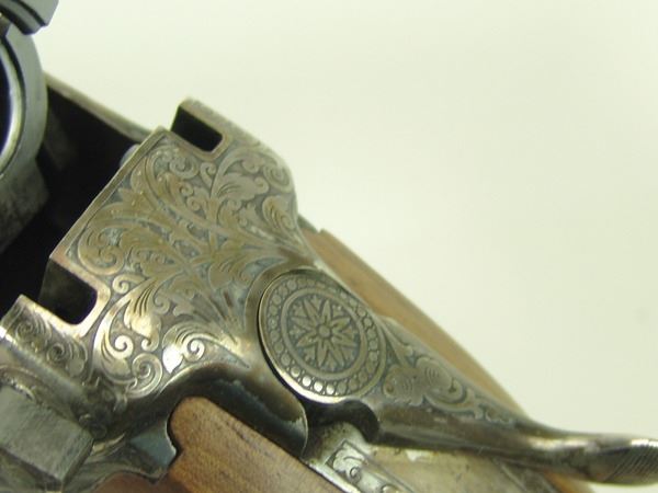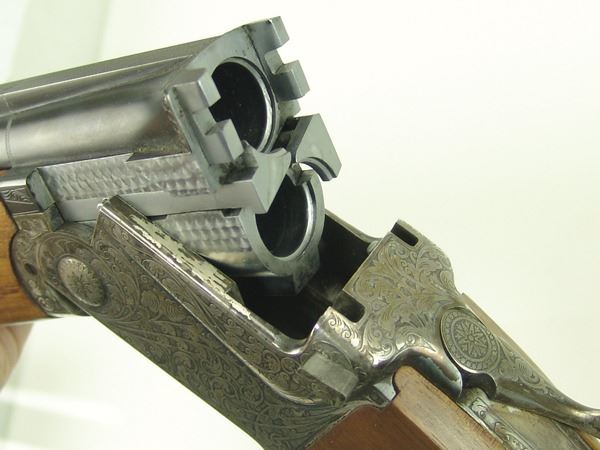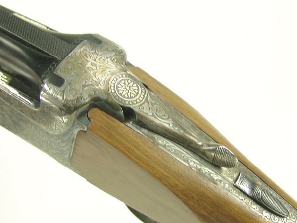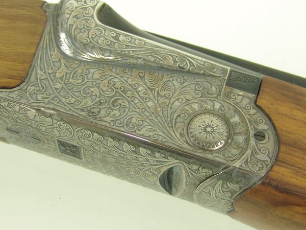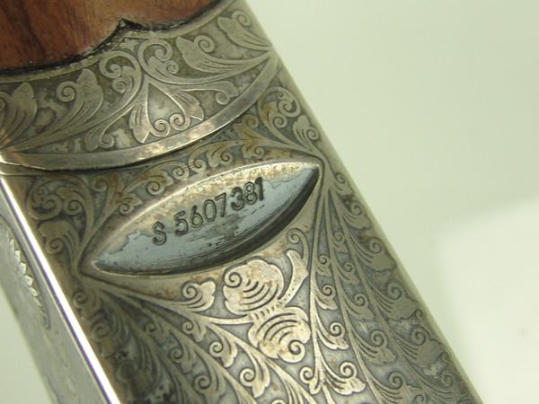 Mid 1900s 48" Beautiful, 12GA (2-3/4") over and under, take down style shotgun with 30" barrels, and expertly engraved receiver. Very good condition. S/N 5607381.