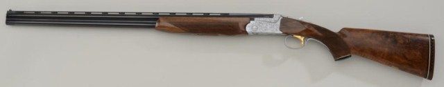 Ithaca Model 700 O/U three barrel set shotgun in luggage style casing, .410 gauge, 2-1/2” chamber, 28” barrels, blue finish, engraved “in the white” receiver, gold trigger, checkered deluxe wood stocks, #S6700091; 28”barrel, 20 gauge, 2-3/4” chamber (spot of erosion at muzzle of lower barrel); 28” barrel, .28 gauge, 2-3/4” chamber. This set is in overall fine condition showing the majority of original blue on all barrels(with one above-noted exception), fine bores, crisp actions, sharp markings, fine wood stocks; case is overall very good +. Est.: $1,000-$2,000.