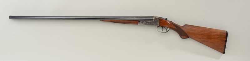 Ithaca hammerless SxS shotgun, blue and case hardened finish, 16 gauge, 30” barrels, blue and case hardened finish, checkered wood stocks, #118624. This gun is in overall good to very good condition showing considerableolder re-blue finish to barrels and approx. 50% original case colors on the receiver, very good to fine bores, very good wood stocks. Est.: $400-$800.