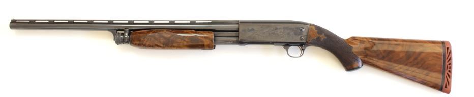 Ithaca model 37T 12 ga. NVSN pump action shotgun basically a disaster but mechanically excellent. The shortened barrel with bright bore, 23", metal surfaces poorly refinished as is stock, the rear with filler repaired areas around bottom of frame, its orpump action shotgun basically a disaster but mechanically excellent. The shortened barrel with bright bore, 23", metal surfaces poorly refinished as is stock, the rear with filler repaired areas around bottom of frame, its original butt padintact. A good gun for a home defender. From old St. Louis collection. FFL/Modern. Est. 175-275