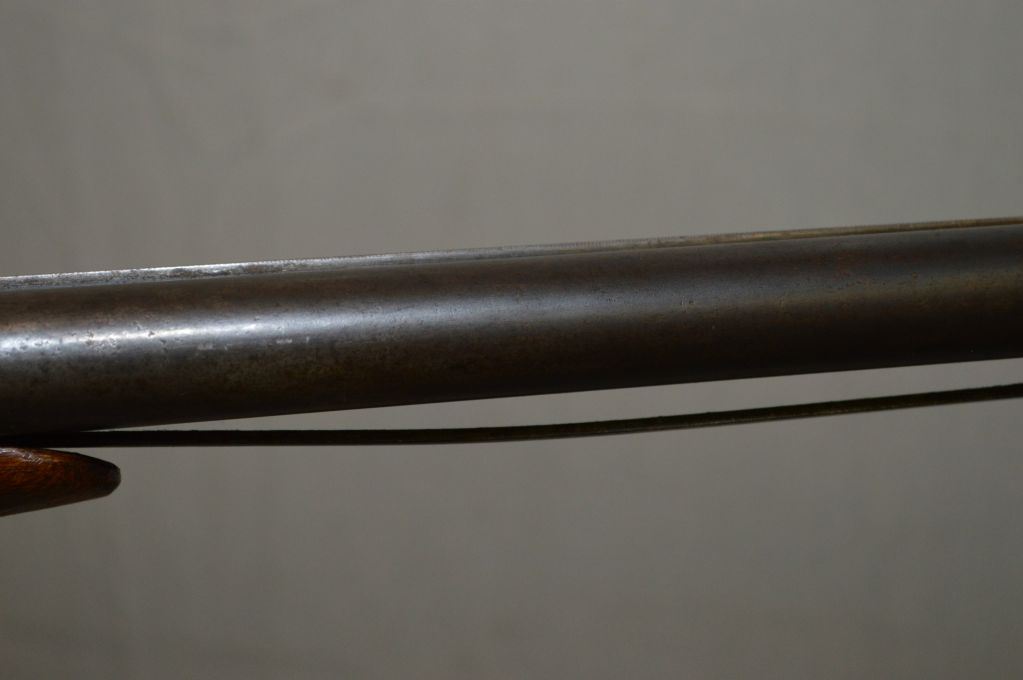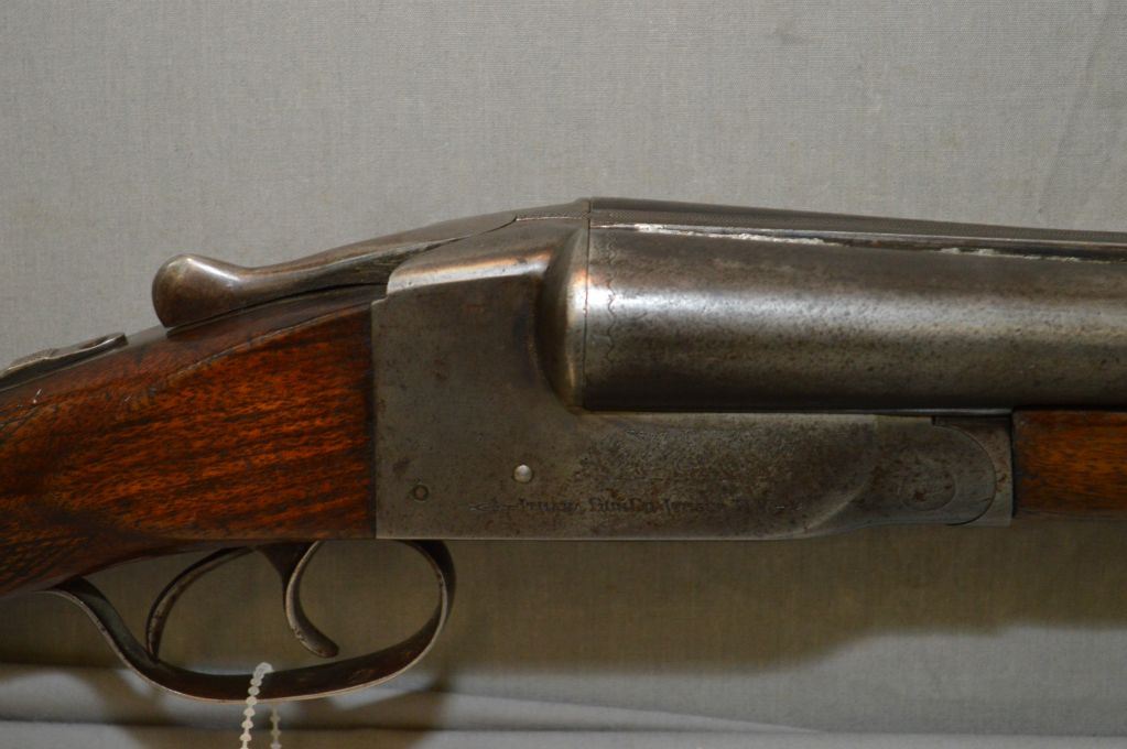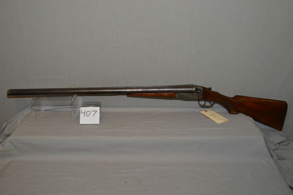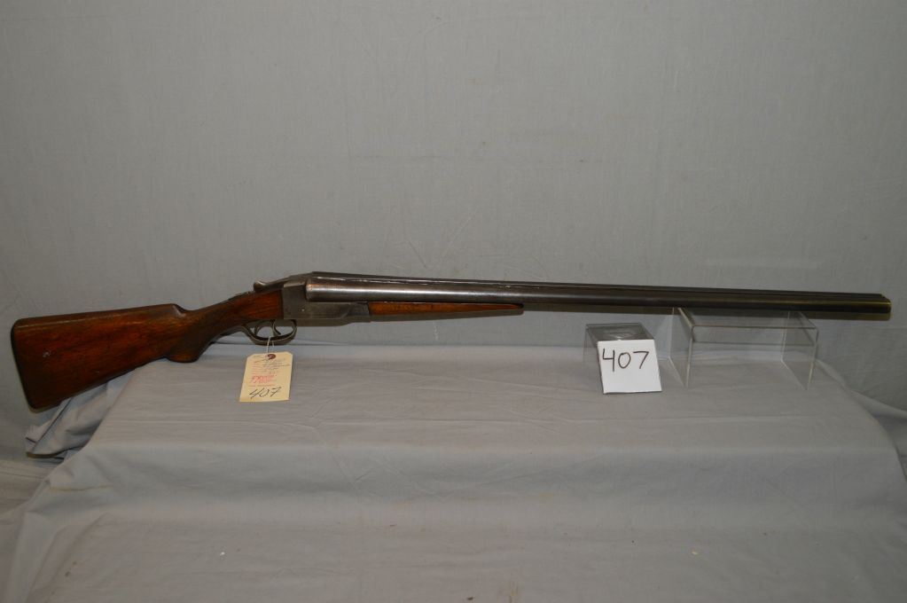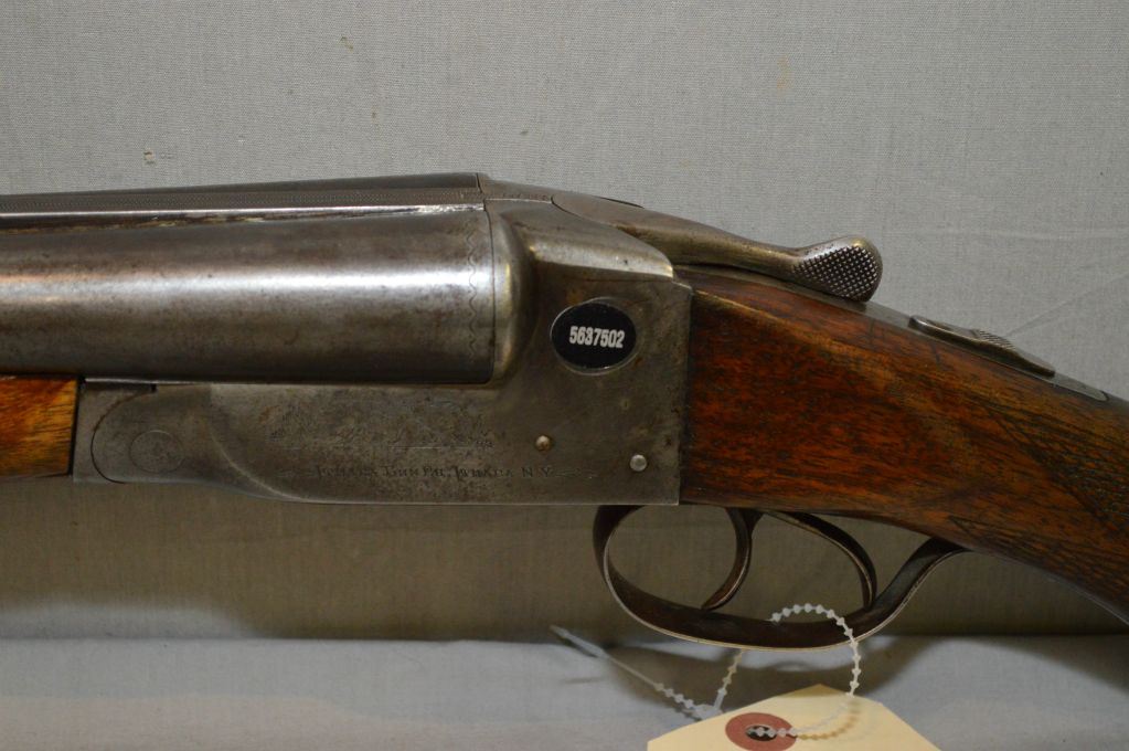 Ithica Model Side By Side Hammerless .12 Ga Side By Side Shotgun w/ 30" bbls [ faded blue finish, traces of flaking case color on receiver, checkered pistol grip stock, w/ Ithica butt plate, Note : soder has gave way on the barrels, needs repair ] Ser # 279265