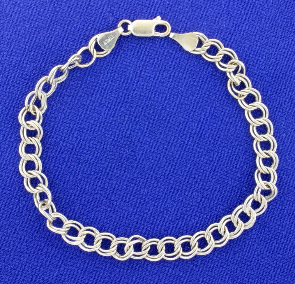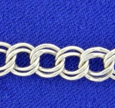 It is 14K white gold and is 8 inches long and 6mm wide.       4.6g