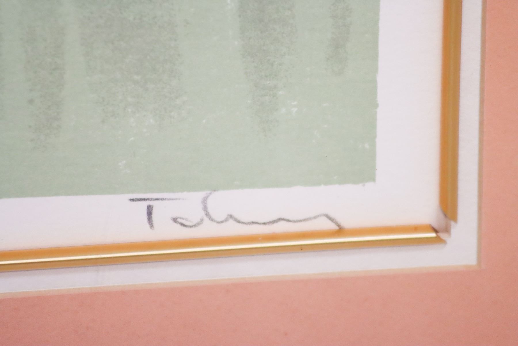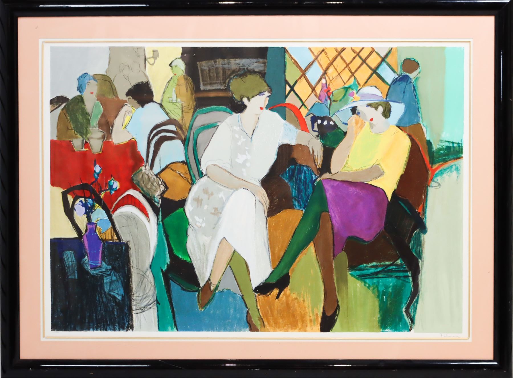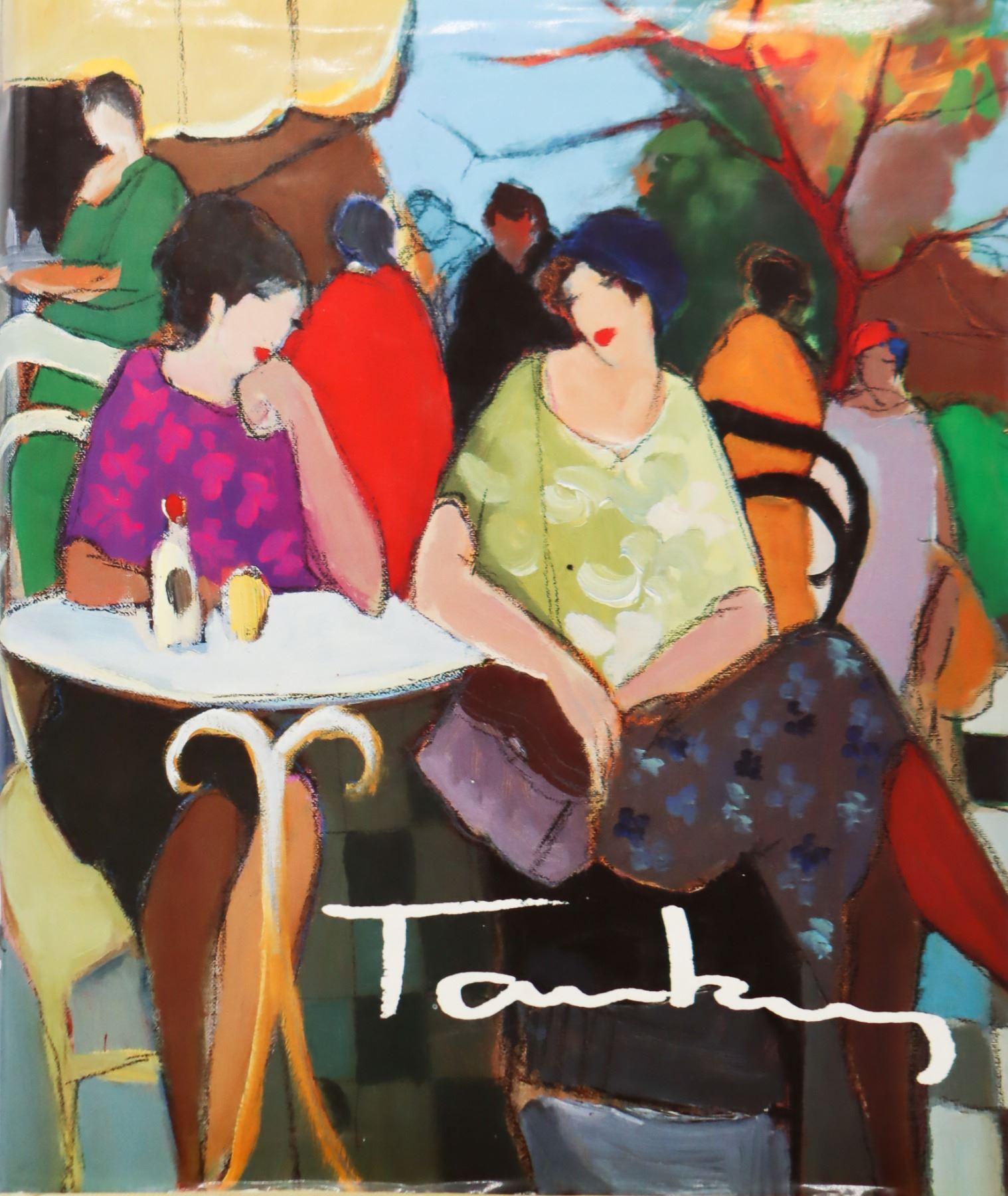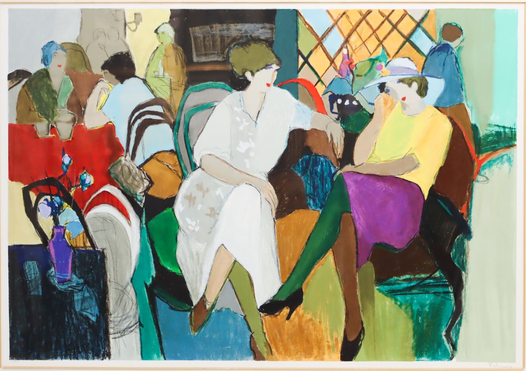 Classy lithograph (and book) by Itzchak Tarkay signed Tarkay in the lower right and numbered 163/300 in the lower left. Subject contains two women sitting for brunch. Tarkay focuses on the female figure by using simplicity of form and line, along with a rich palette not unlike Toulouse-Lautrec, to create sensitive portraits of elusive ladies.