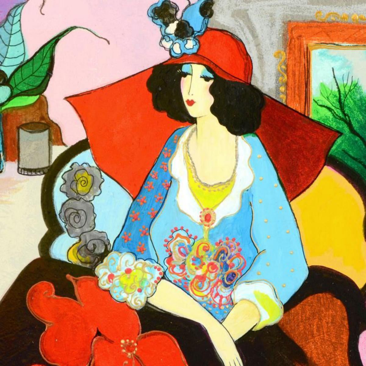 This is a one-of-a-kind acrylic over paint on wood panel by Itzchak Tarkay (1935-2012), hand signed by the artist. Includes Letter of Authenticity. Measures approx. 12" x 9" (image). Reference #: 245540
