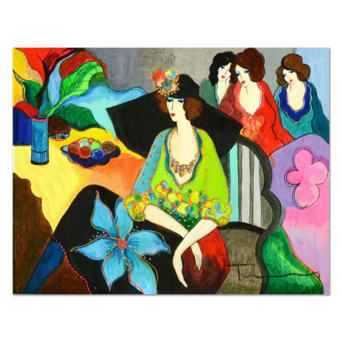 Itzchak Tarkay (1935-2012), One-of-a-Kind Acrylic Over Paint on Wood Panel, Hand Signed with Letter