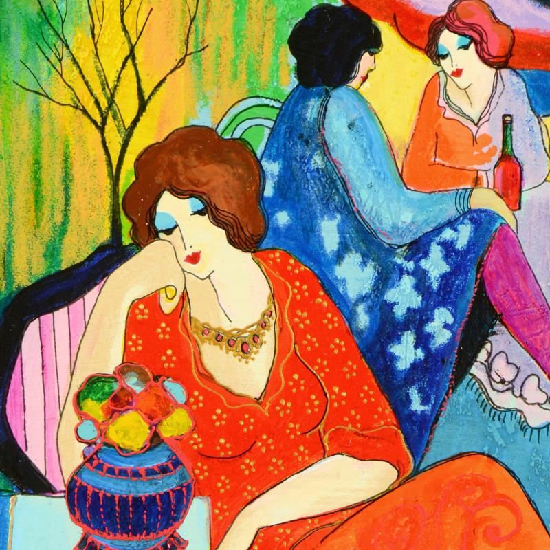 This is a one-of-a-kind acrylic over paint on wood panel by Itzchak Tarkay (1935-2012), hand signed by the artist. Includes Letter of Authenticity. Measures approx. 8" x 11.5" (image).
