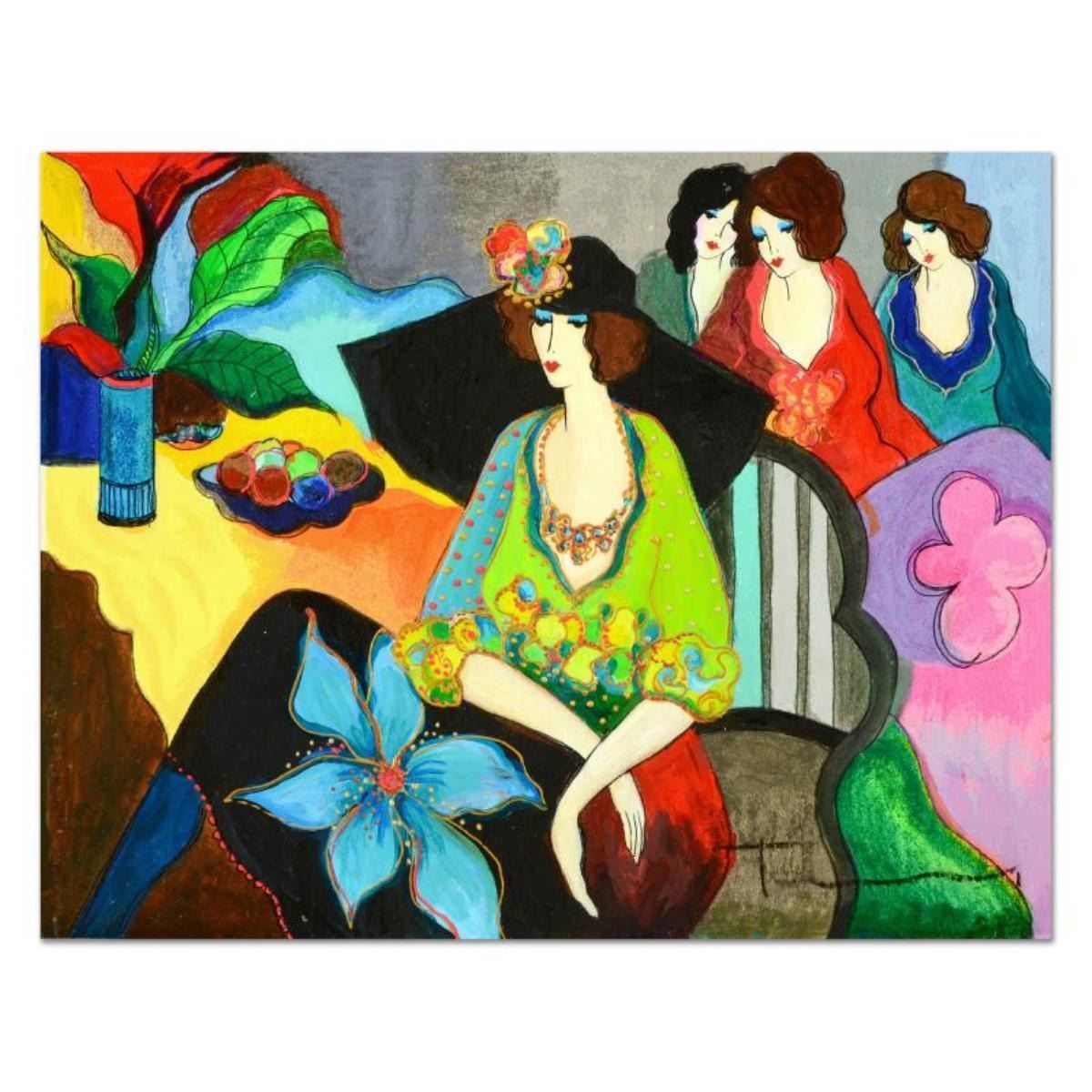 Itzchak Tarkay (1935-2012), One-of-a-Kind Acrylic Over Paint on Wood Panel, Hand Signed with Letter of Authenticity. This is a one-of-a-kind acrylic over paint on wood panel by Itzchak Tarkay (1935-2012), hand signed by the artist. Includes Letter of Authenticity. Measures approx. 12" x 9" (image).