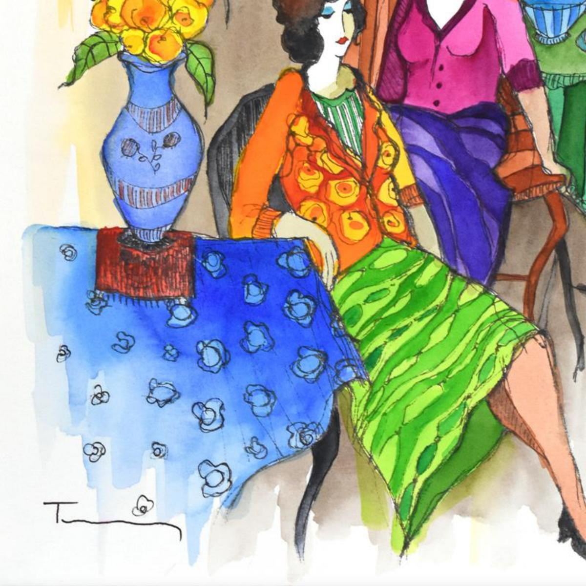 This is an original mixed media watercolor on paper by Itzchak Tarkay (1935-2012), hand signed by the artist. Includes Certificate of Authenticity. Measures approx. 12" x 16" (image). Reference #: 256179