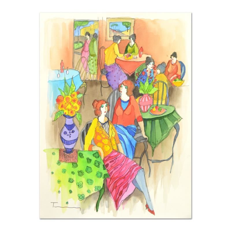 This is an original mixed media watercolor on paper by Itzchak Tarkay (1935-2012), hand signed by the artist. Includes Letter of Authenticity. Measures approx. 12" x 16" (image).