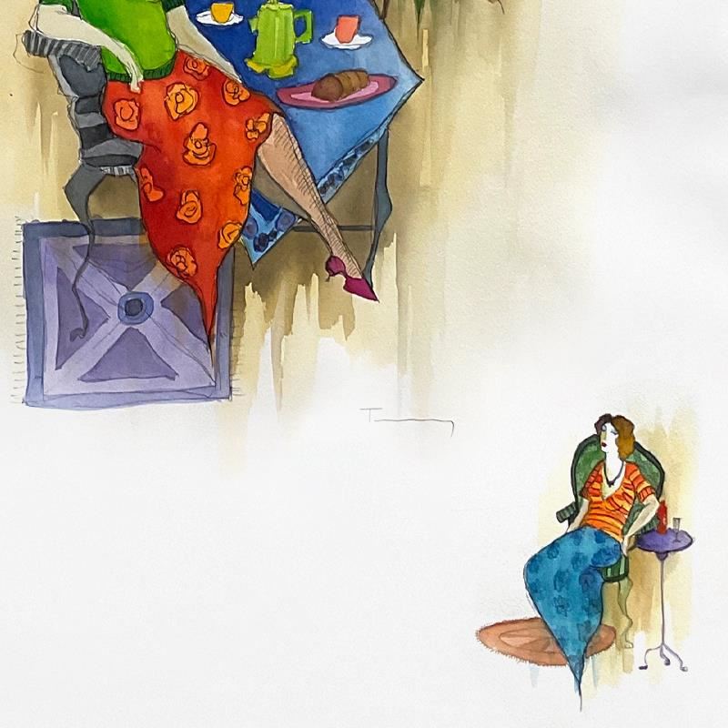 This is an original mixed media watercolor on paper by Itzchak Tarkay (1935-2012), hand signed by the artist. This piece comes custom framed. Includes Letter of Authenticity. Measures approx. 38.5" x 31" (frame), 30" x 22" (image). The paper is slightly wavy due to the nature of the watercolor medium.