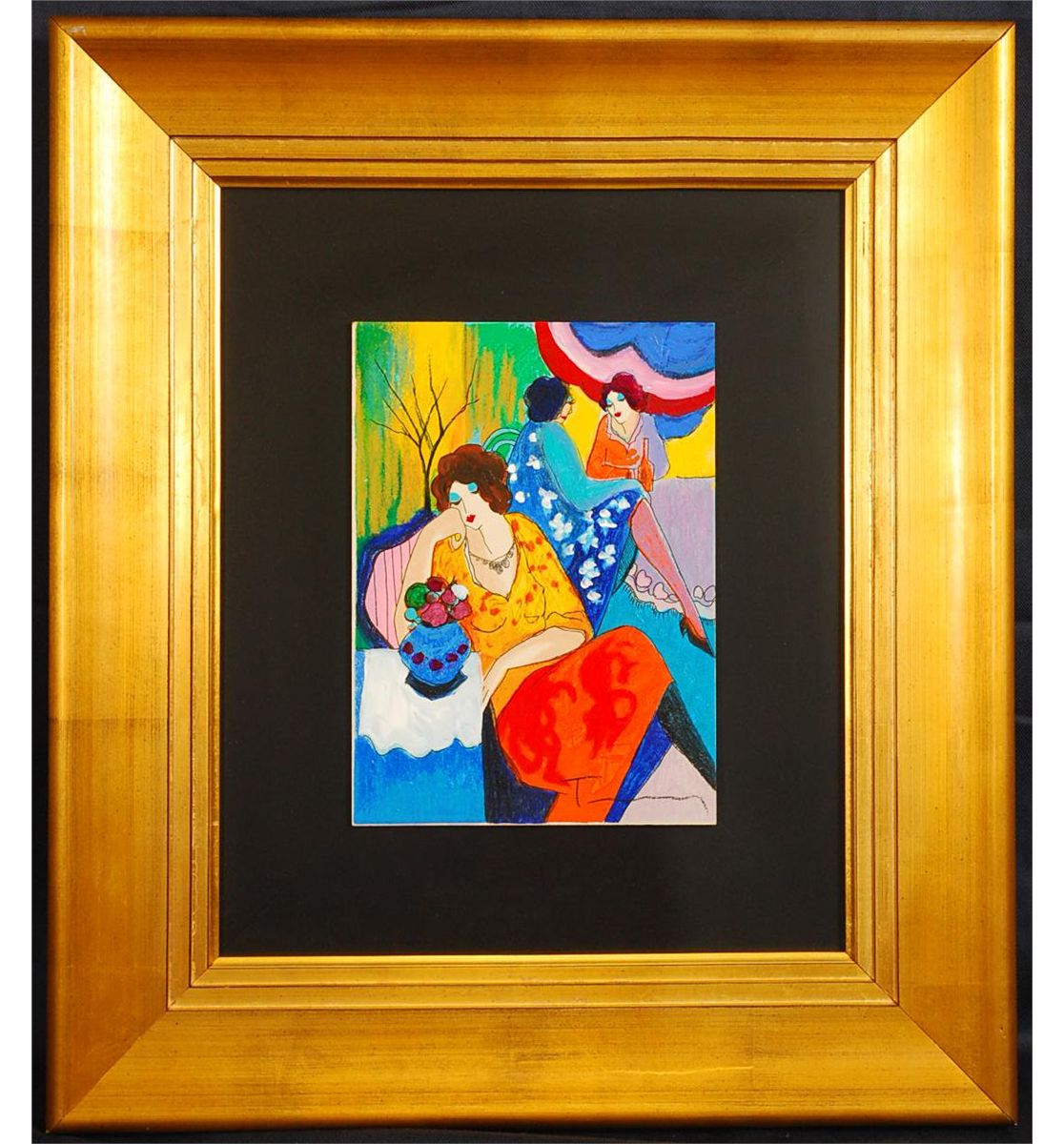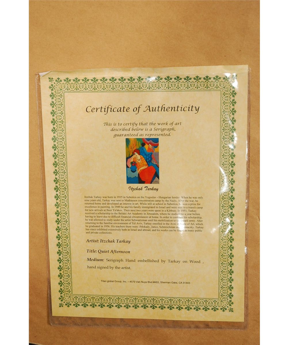 Itzchak Tarkay "Quiet Afternoon" Limited Edition Hand Embellished by Tarkay serigraph on wood, hand signed by the artist.