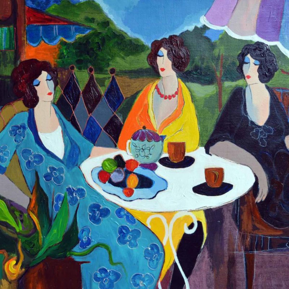 Itzchak Tarkay (1935-2012) - "Spring Afternoon" One-of-a-Kind Over Paint on Canvas, Hand Signed with