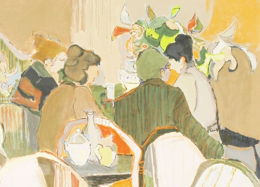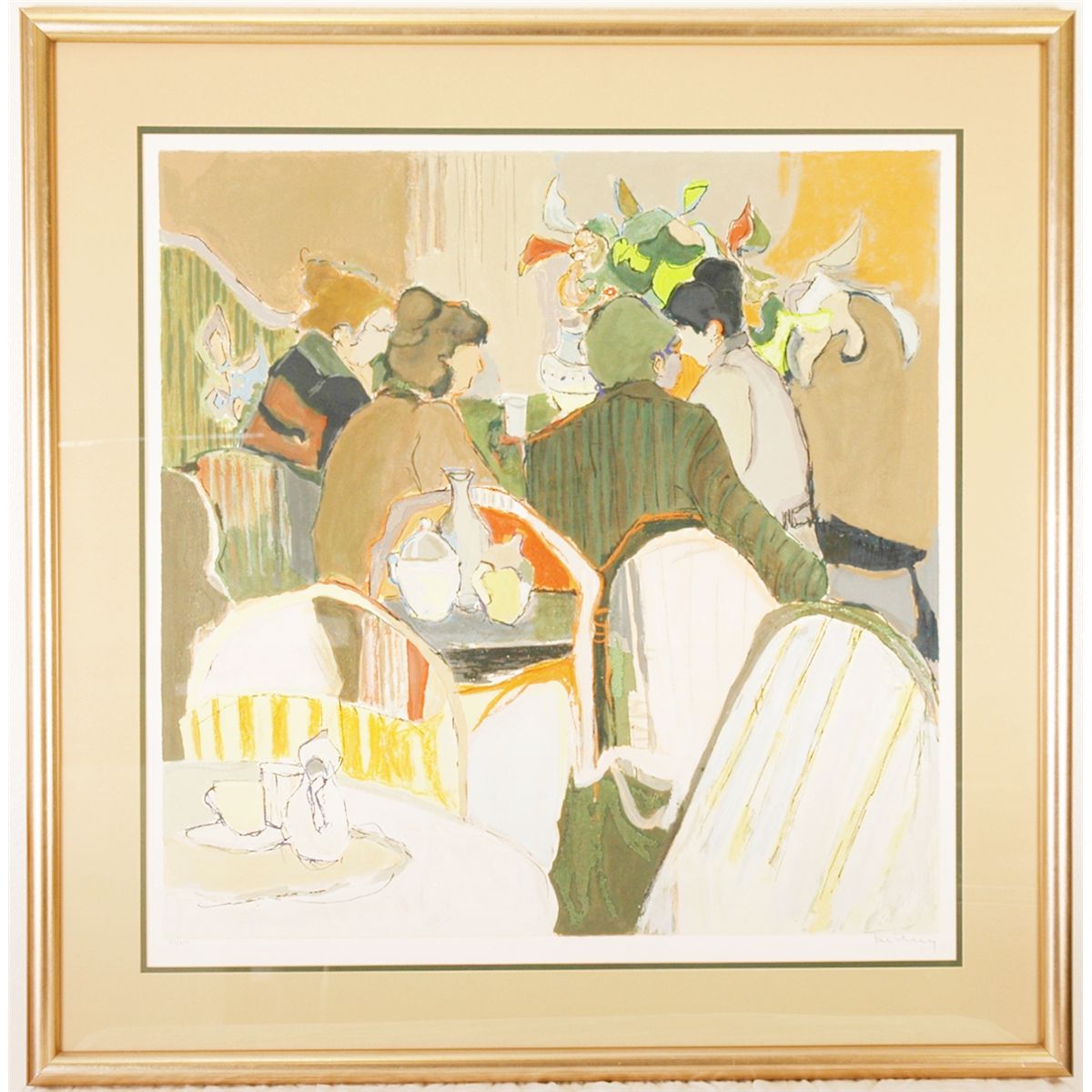 Itzchak Tarkay (b.1935) Yugoslavian/ Hungarian. "DINERS", color lithograph, signed in pencil, from the numbered edition 250, image 27 x 27”, full margins, framed with glass
