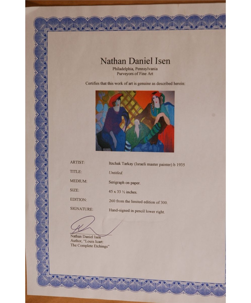 Itzchak Tarkay (1935-2012) "Untitled" Serigraph on Paper, Hand signed in pencil lower right by the artist. Framed: 59"x48", Edition: #260 from the limited edition of 300