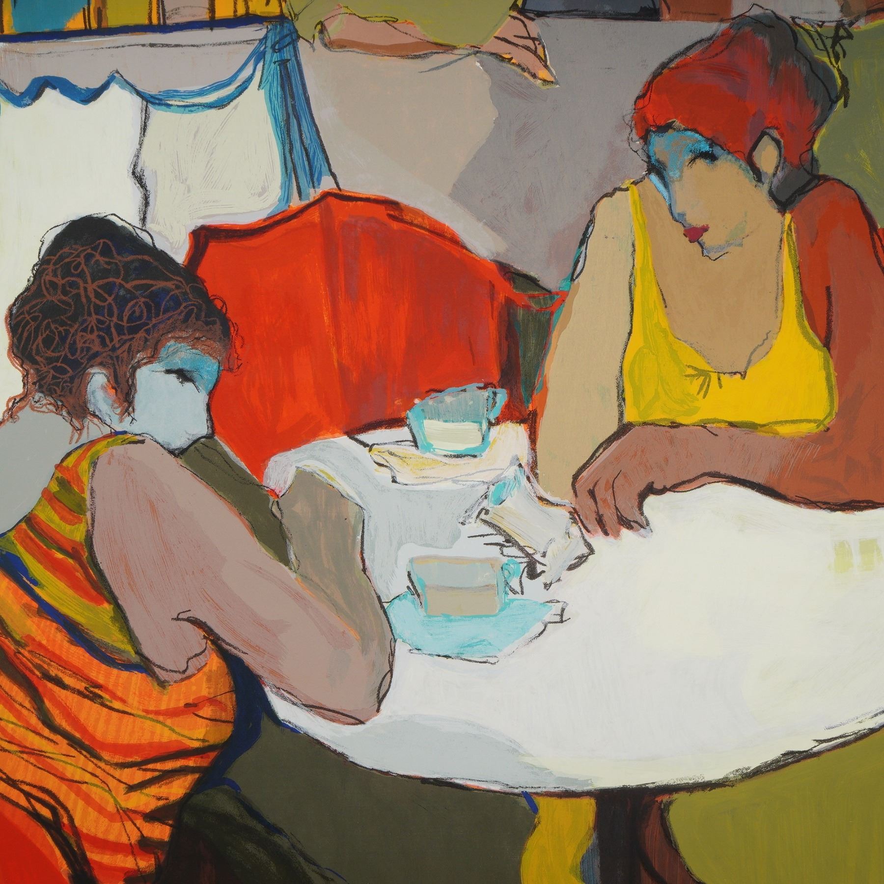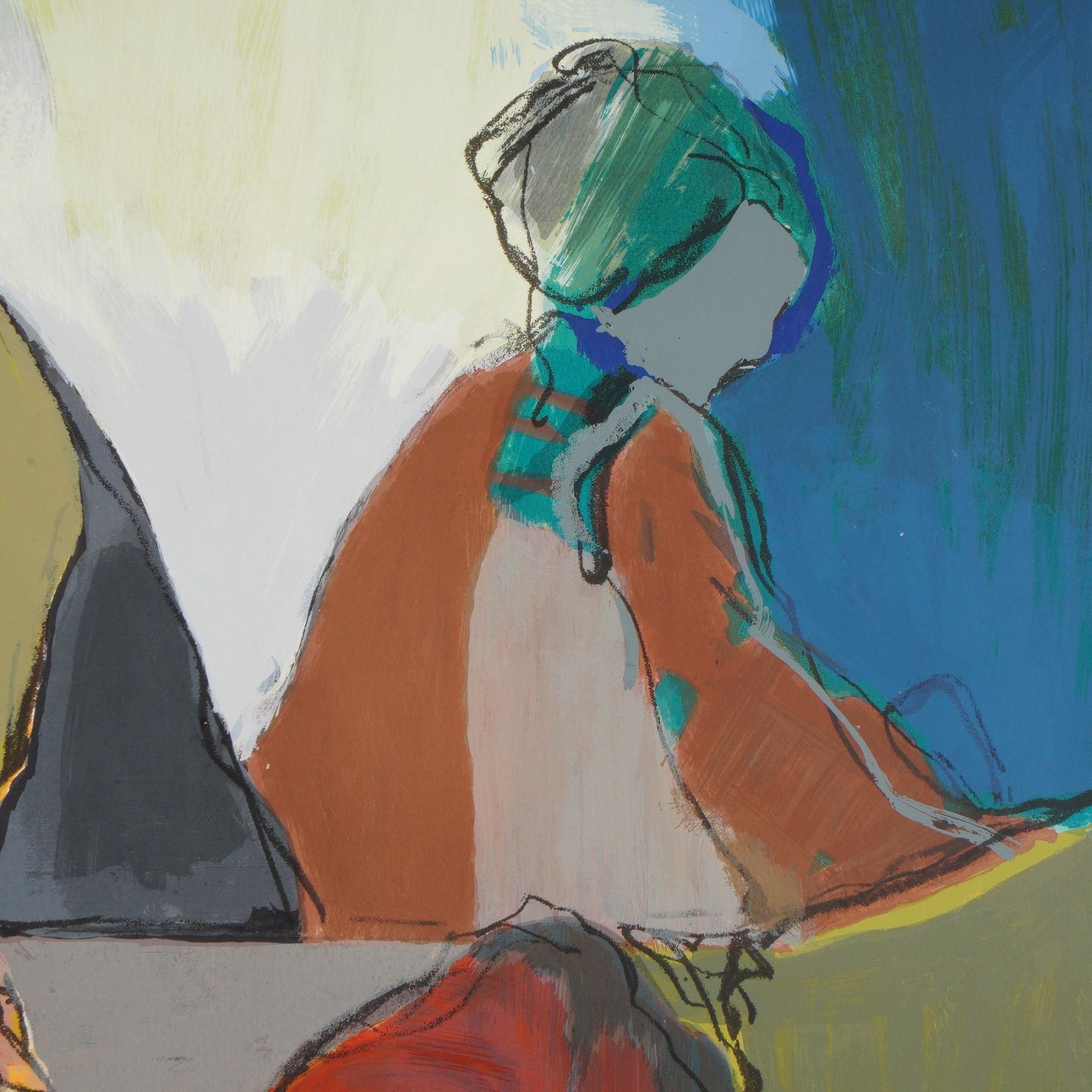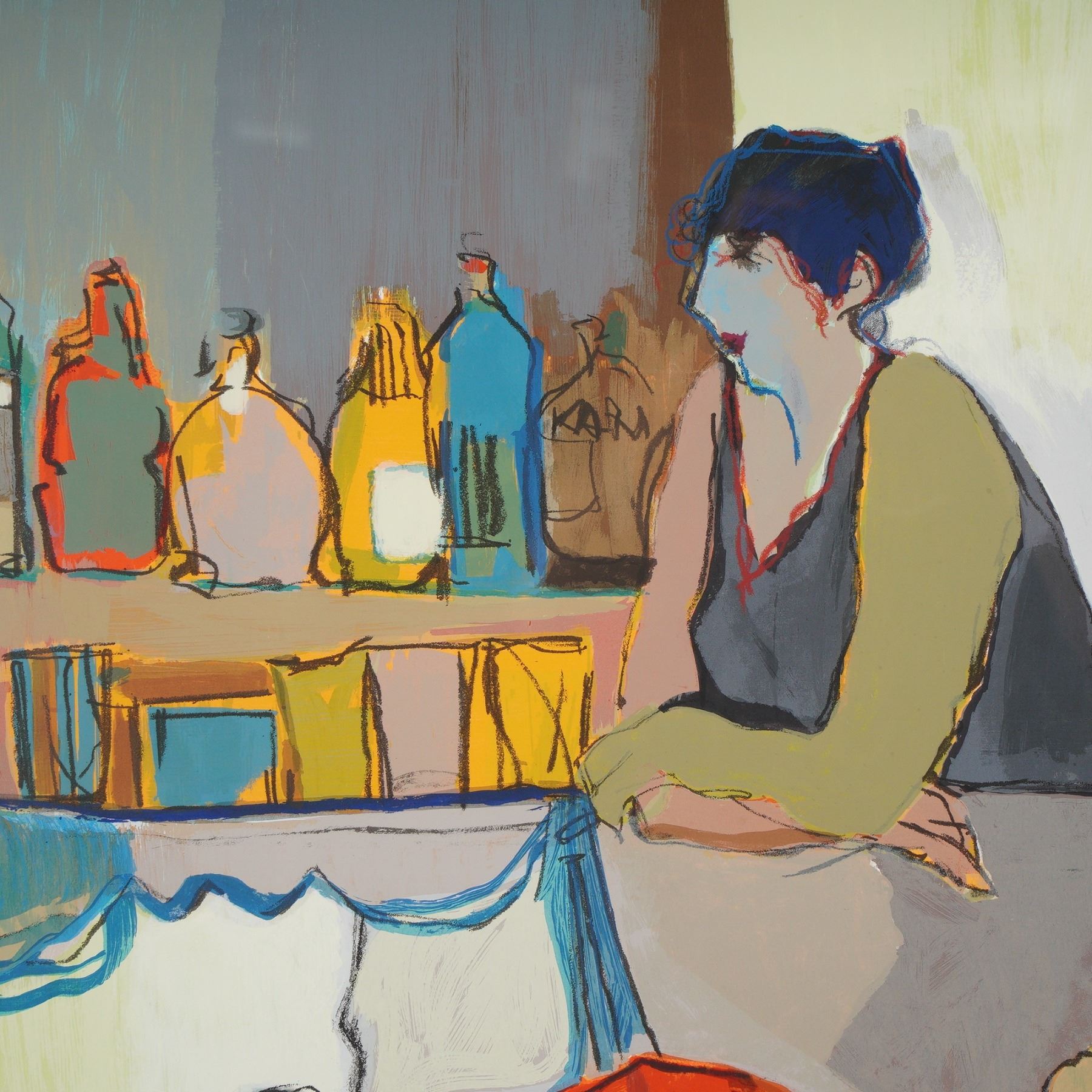 Vibrant and captivating, this limited edition serigraph on paper by acclaimed artist Itzchak Tarkay is titled Spare Time. The composition captures a relaxed cafe scene, with Tarkay's signature use of bold color fields, fluid lines, and elegant figures lost in quiet conversation. The work reflects his hallmark style, blending influences from French Impressionism, Post-Impressionism, and Fauvism, infusing everyday moments with sophistication and warmth. Tarkay, born in Yugoslavia, survived internment during World War II and later studied at the Bezalel Academy of Arts and Design in Jerusalem and the Avni Institute of Art in Tel Aviv. He became internationally renowned for his romanticized depictions of women in serene, dreamlike settings, his works gracing galleries and private collections worldwide. Numbered 13/300 and signed in pencil on the lower right.