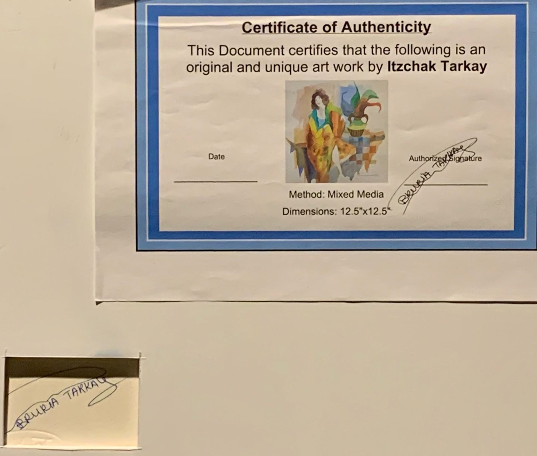 Itzchak Tarkay (1935 - 2012) Original mixed media, "Untitled" Hand signed and gallery stamped, lower right. Sheet 12.5"x 12.5", framed 30.5" x 30.5". Comes with COA from Tarkay's widow, Bruria Tarkay.