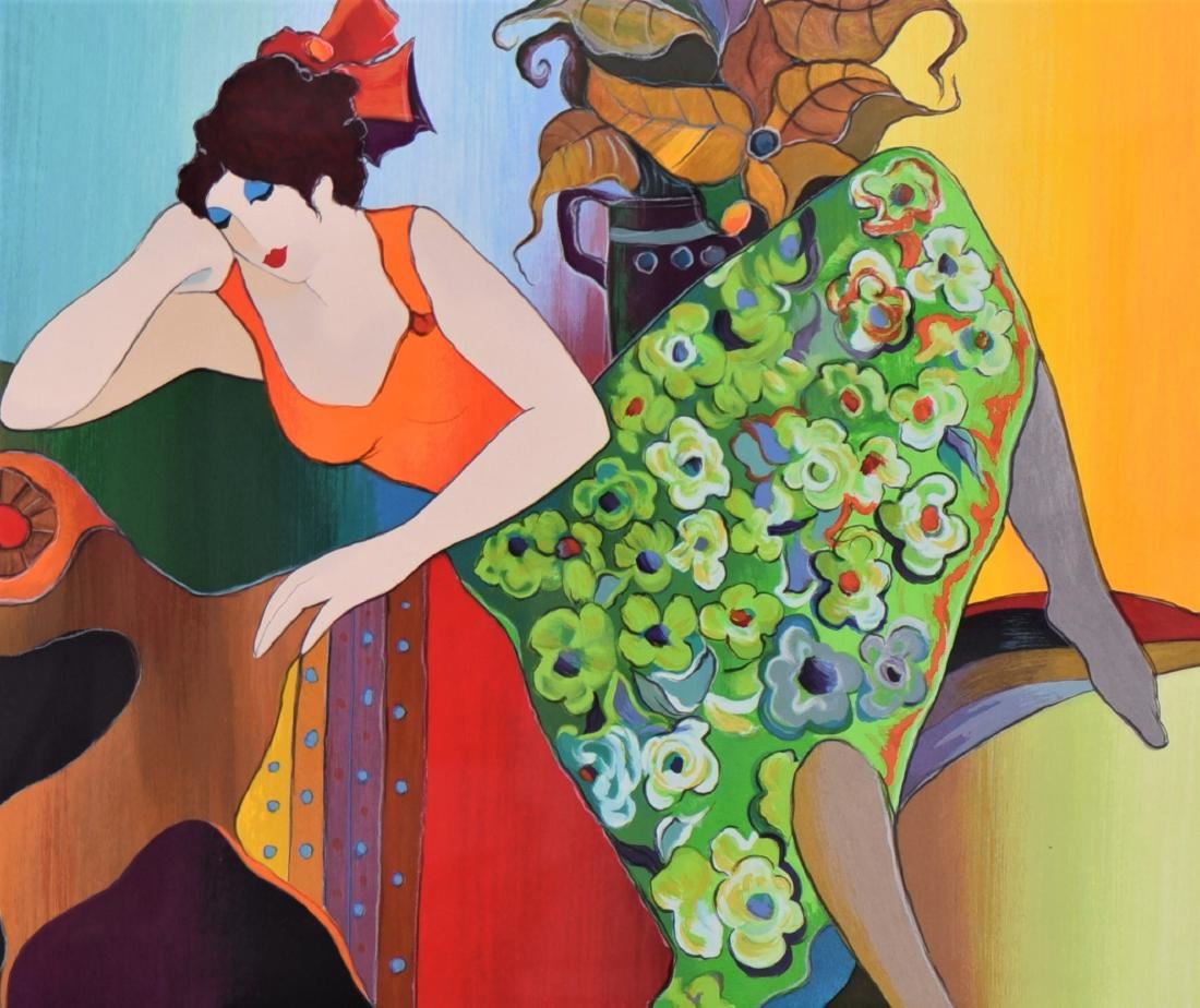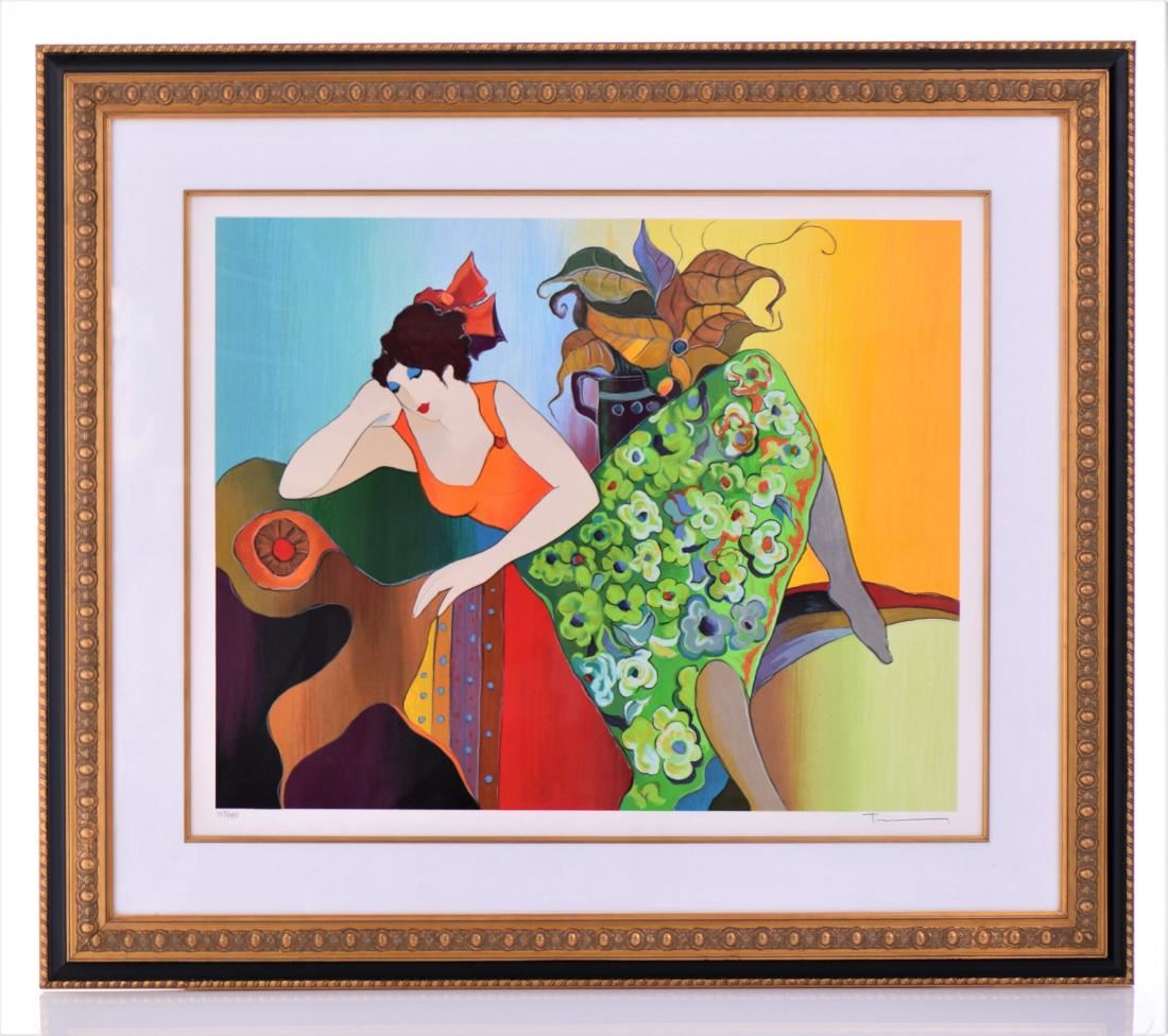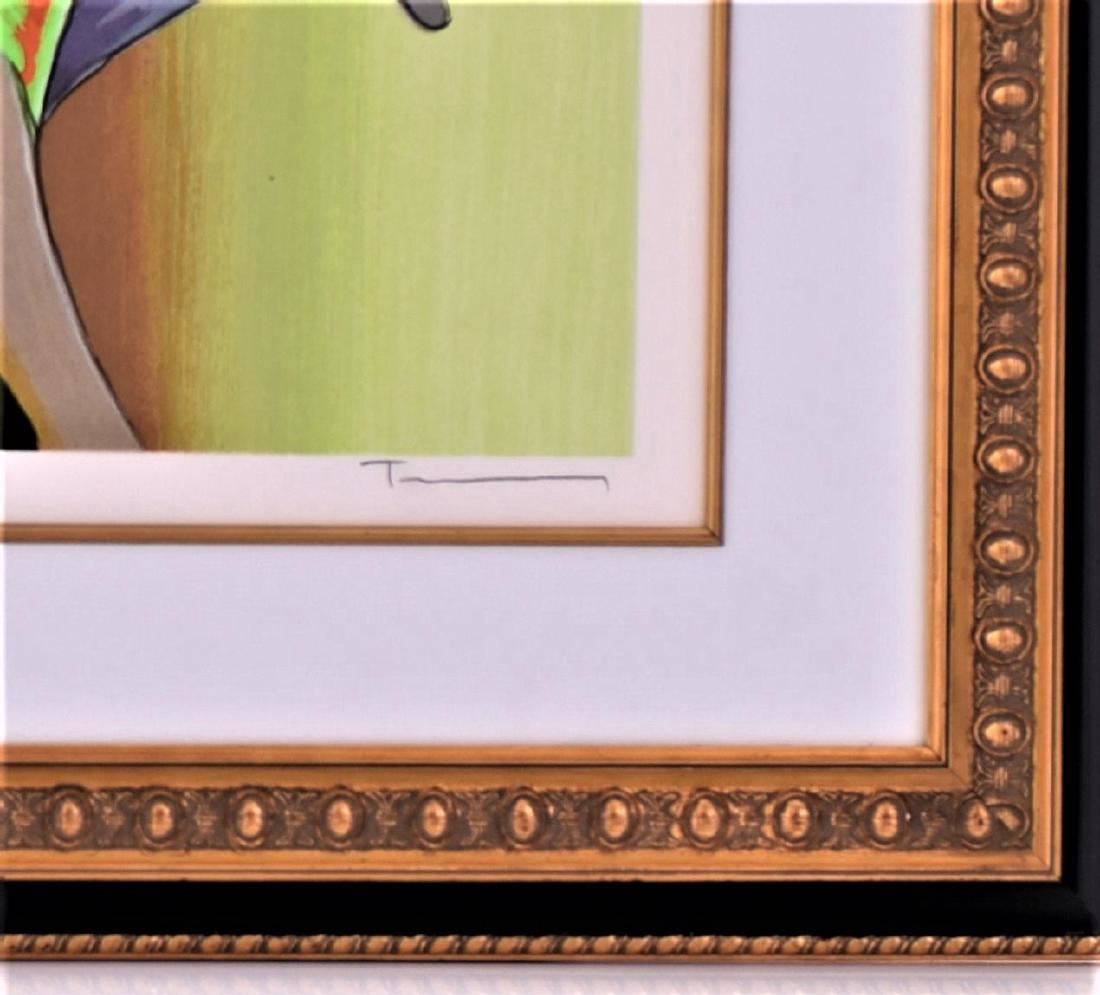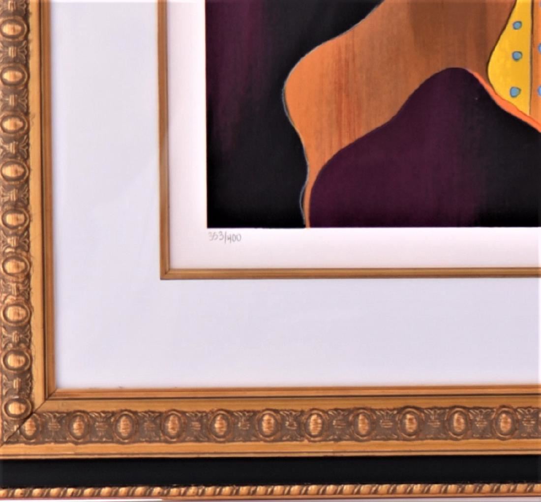 Itzchak Tarkay, "Ruby In Green", 2005, #353/400. A Serigraph in Color On Wove Paper Signed In Pencil At Lower Right Corner. COA# 208630.0039 Certificate Of Authenticity Issued By Park West Delaware. From The Numbered Edition of 400 (80 European artist's proofs, 80 Artist's proofs, 80 hors commerce proofs, 36 printer's proofs, 44 Roman numbered proofs and 3 bon a tirer impressions also exist). An edition of 396 on canvas also exists. Size 37.5 inches x 32.5 inches. Estimated less than 50 yrs old. (Pangaea Auctions) (Photos Represent The Lot Condition.)