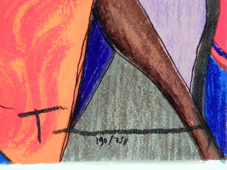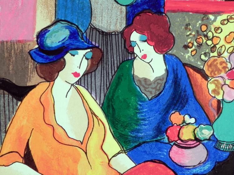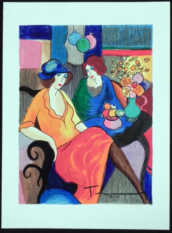These women are having a lively and colorful chat. Artist: Itzchak TarkaySignature: In wax pencil, lower rightTitle: Chit ChatEdition: Limited 190/750Medium: Serigraph on paperImage size: 9 1/4 x 6 7/8 inchesSheet size: 8 5/8 x 11 5/8 inchesCondition: Excellent Biography:Itzchak Tarkay was born in 1935 in Subotica on the Yugoslav Hungarian border. When he was only nine years old, the Nazis sent Tarkay to Mathausen concentration camp. After the war, he returned home and developed an interest in art. While still a student, he won a prize for excellence in painting. In 1949, Tarkay and his family immigrated to Israel and were sent to a transit camp for new arrivals at Beer Ya'akov. Their next two years were spent in a Kibbutz. In 1951, Tarkay received a scholarship to the Bezalel Art Academy in Jerusalem, where he studied for a year before having to leave due to difficult financial circumstances at home. In order to continue his scholarship, he was allowed to study under the artist Schwartzman until his mobilization to the Israeli army. After returning to the familiar environment of Tel Aviv, Tarkay enrolled in the Avni Institute of Art, which he graduated in 1956. His teachers there were Mokady, Janko, Schtreichman and Sematsky. Tarkay has since exhibited extensively both in Israel and abroad, and his works can be found in many public and private collections.