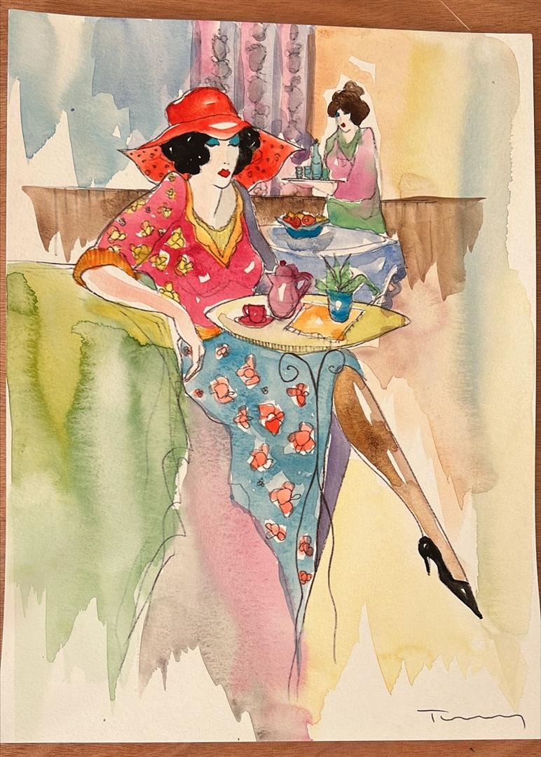 Itzchak Tarkay "Untitled Mini 20" Hand Signed Mixed Media Watercolor on Paper Dimensions: 12 x 9 Inches