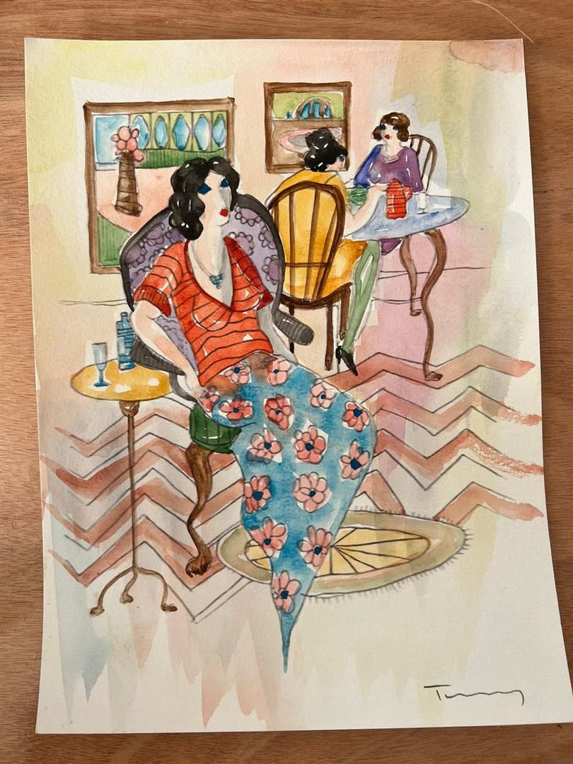 Itzchak Tarkay "Untitled Mini 21" Hand Signed Mixed Media Watercolor on Paper Dimensions: 12 x 9 Inches