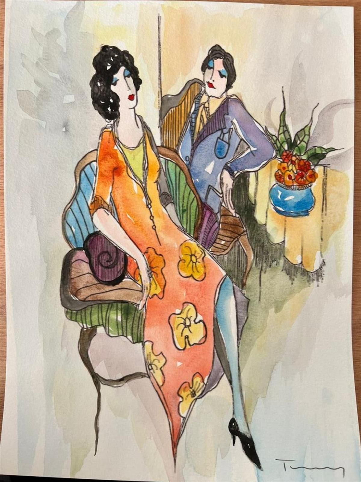 Itzchak Tarkay "Untitled Mini 27" Hand Signed Mixed Media Watercolor on Paper Dimensions: 12 x 9 Inches
