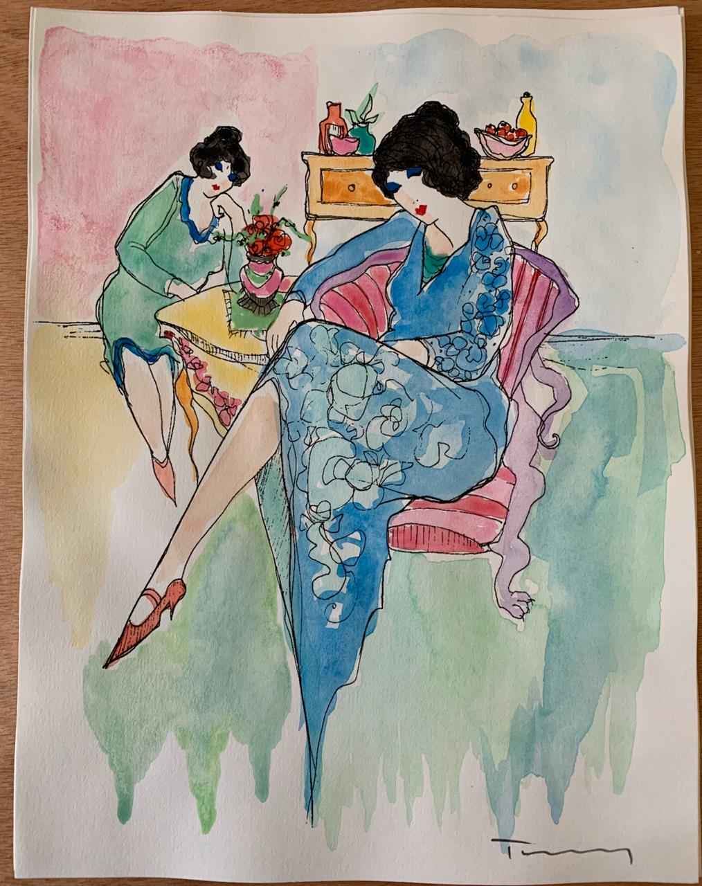 Itzchak Tarkay "Watercolor (Untitled Ref. #11)" Original Mixed Media Watercolor, Hand Signed Dimensions: 8.5 x 11 inches