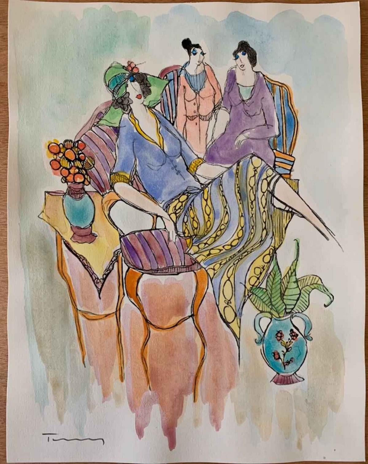 Itzchak Tarkay "Watercolor (Untitled Ref. #15)" Original Mixed Media Watercolor, Hand Signed Dimensions: 8.5 x 11 inches