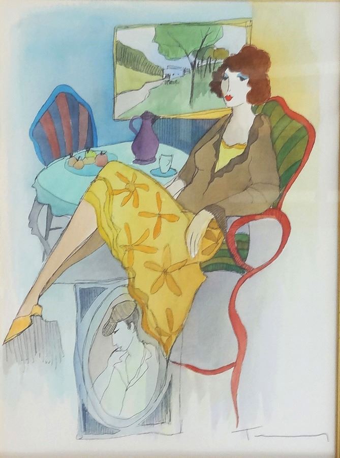 Itzchak Tarkay, Yesterday's Memory, Watercolor Painting