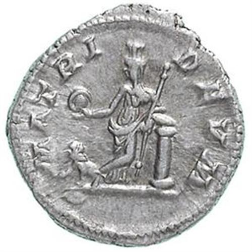 Roman Empire Coins. Iulia Domna, moglie di Septimius Severus (deceduta nel 217 d.C.). Denarius. D/ IVLIA PIA FELIX AVG. Busto drappeggiato a destra. R/ MATRI DEVM. Cybele, stante tre quarti a sinistra, con il gomito appoggiato ad una colonna, tiene tamburello e scettro. Ai suoi piedi un leone accovacciato. RIC (Carac.) 382. gr. 3.18 R. AG. SPL/qSPL. Fondi lucenti.