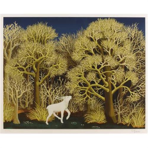 <B>Ivan Generalic </B></I>(Croatian 1914-1992)<BR><I>White Deer in Forest</B></I><BR>Print, ed. 32/180<BR>21 x 26 inches (53.3 x 66.0 cm)<BR>Signed lower right<BR> <BR><BR><b>Shipping:</b> Requires 3rd Party Shipping (<a target="_blank" href="http://www.heritageauctions.com/common/shipping.php">view shipping information</a>)