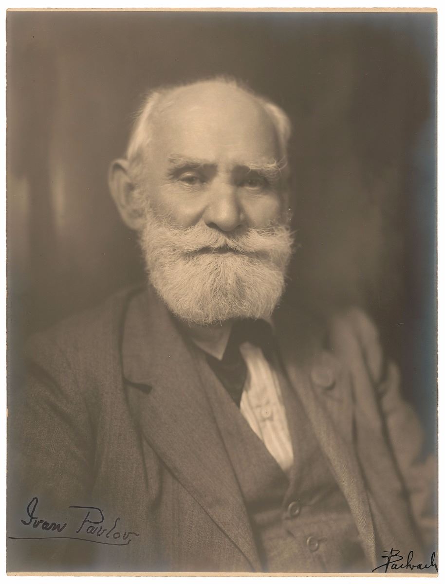Russian physiologist (1849–1936) best known for his investigation of conditioned reflex through the use of experiments involving salivating dogs. He was awarded the Nobel Prize in Medicine in 1904. Superior matte-finish 7 x 9.25 head-and-shoulders portrait of Pavlov, signed in the lower left in fountain pen. Also signed in the lower right by the photographer, “Bachrach.” In fine condition, with silvering surrounding the signature and evenly trimmed edges. A rare format in an unusually large size.