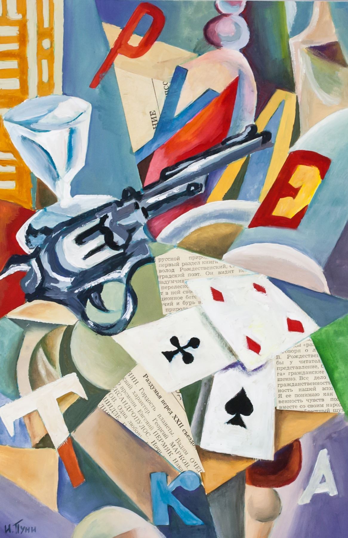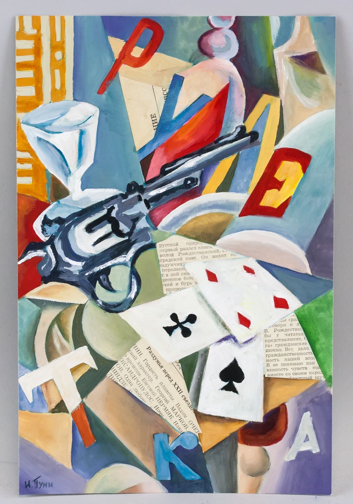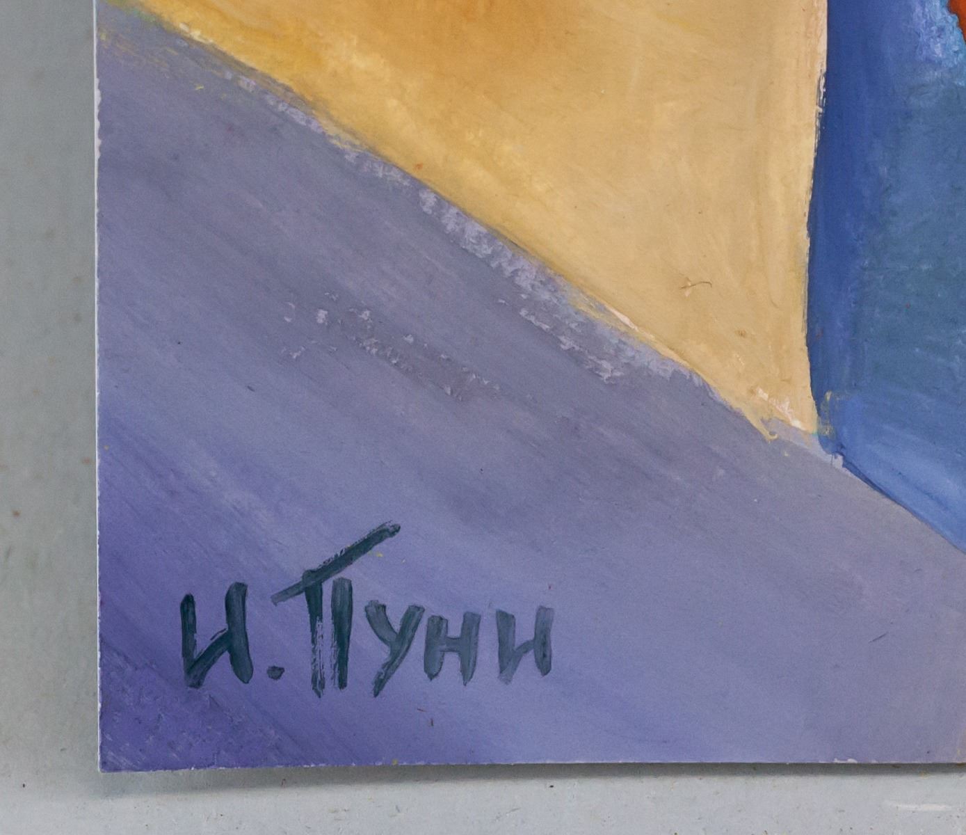 Mixed media on paper. Featuring a cubo-futurist composition. Signed in Russian Cyrillic on the lower left corner. Attributed to Ivan Puni (1892-1956, Russian). 29 x 19 cm (11.25 x 7.5 in). PROVENANCE: Southern Ontario estate