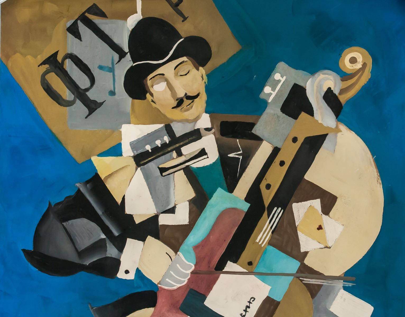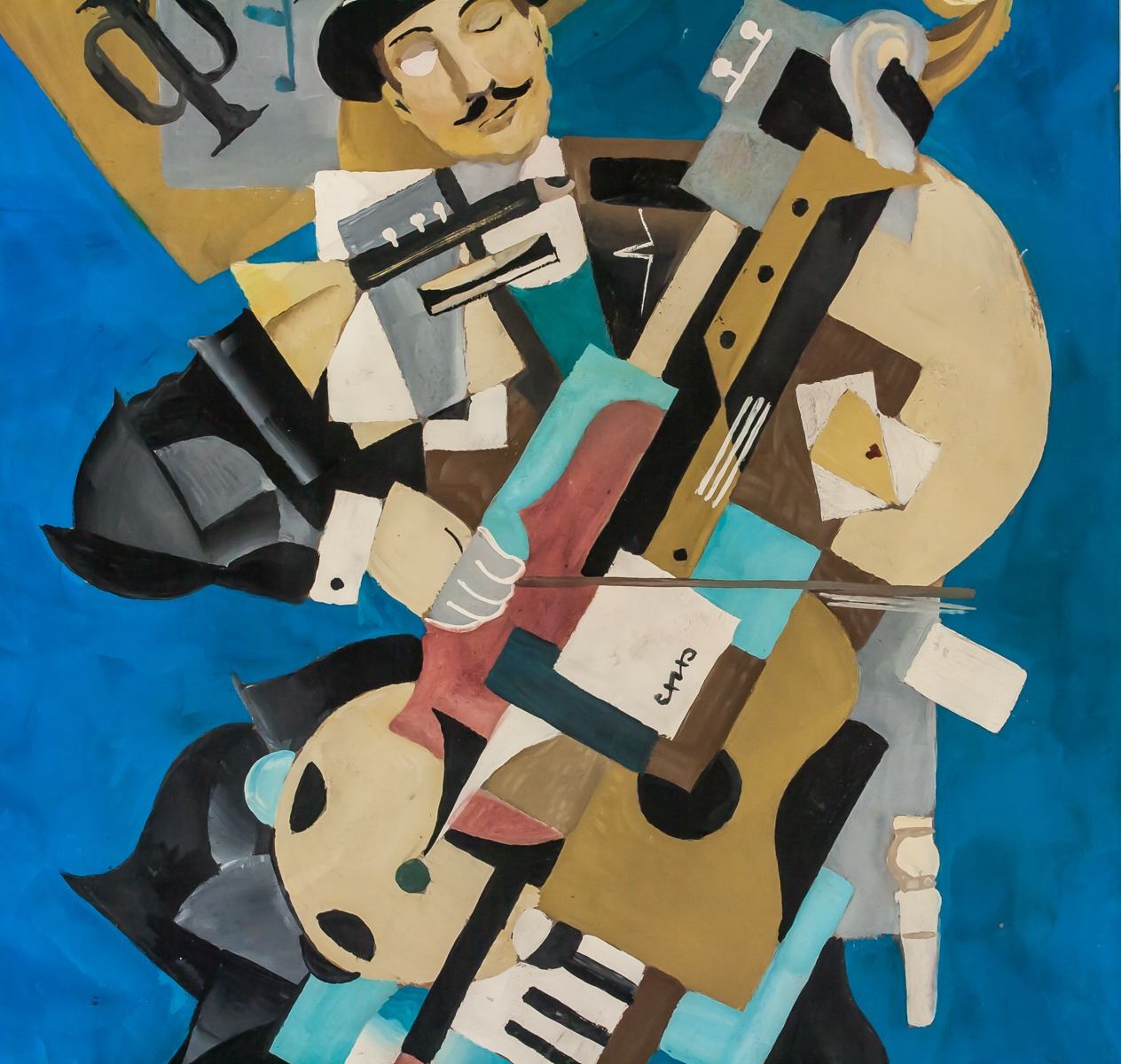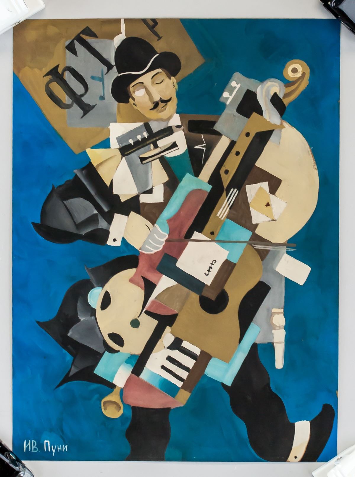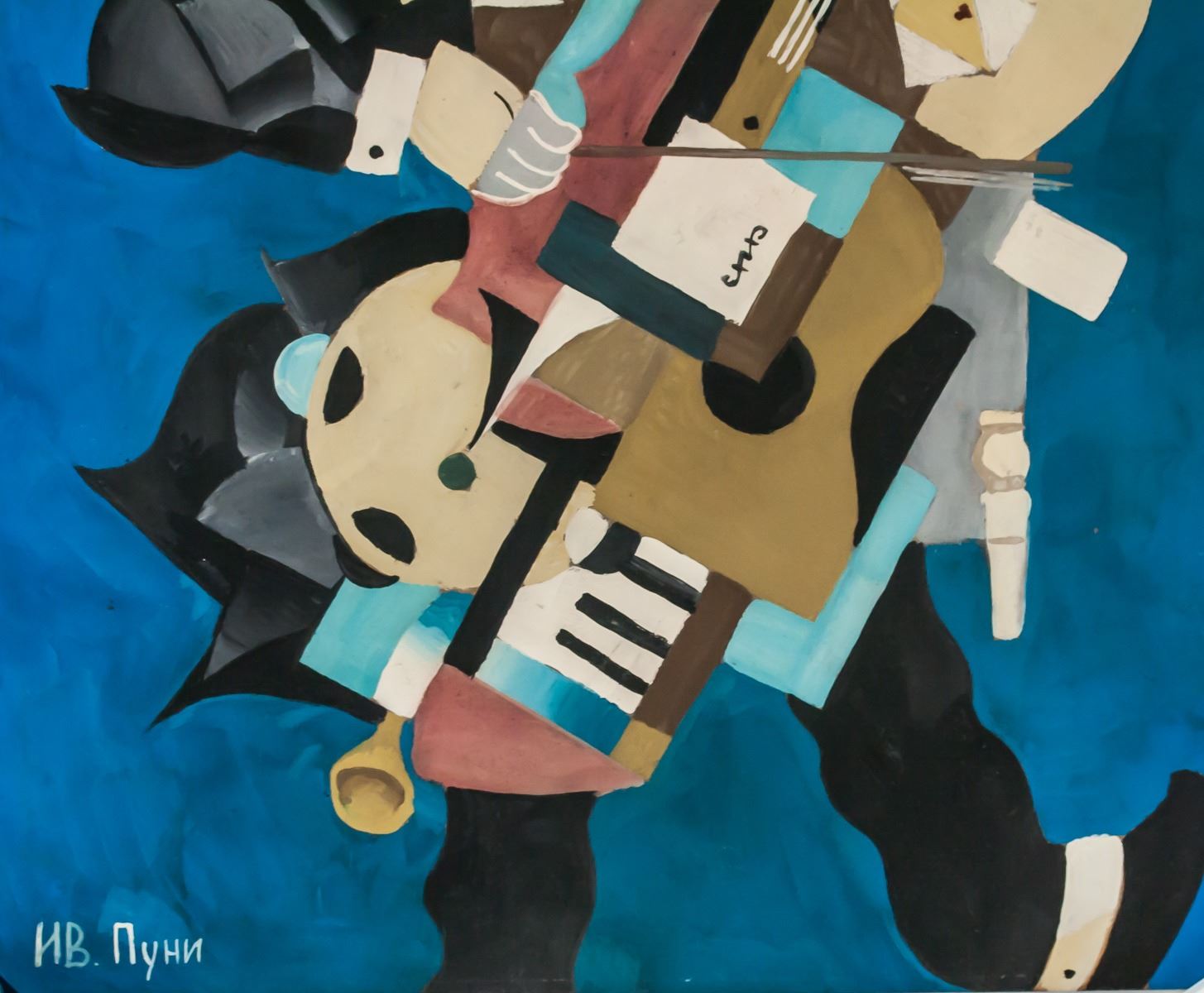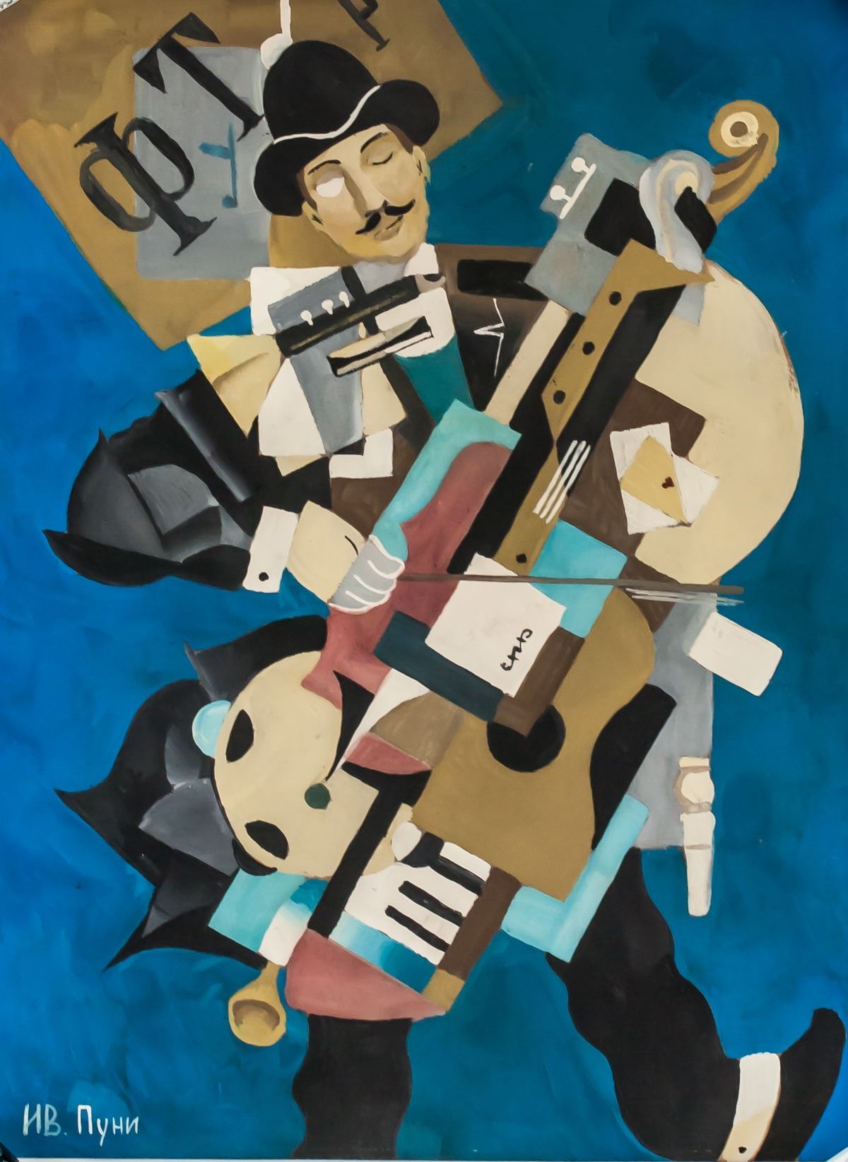Gouache on paper. Featuring a suprematist portrait of instrumentalist. Signed in Cyrllic Puni on the lower left corner. Attributed to Ivan Puni (Russian, 1892-1956). 27.5 x 20 cm (10.8 x 7.9 inches). PROVENANCE: Southern Ontario estate