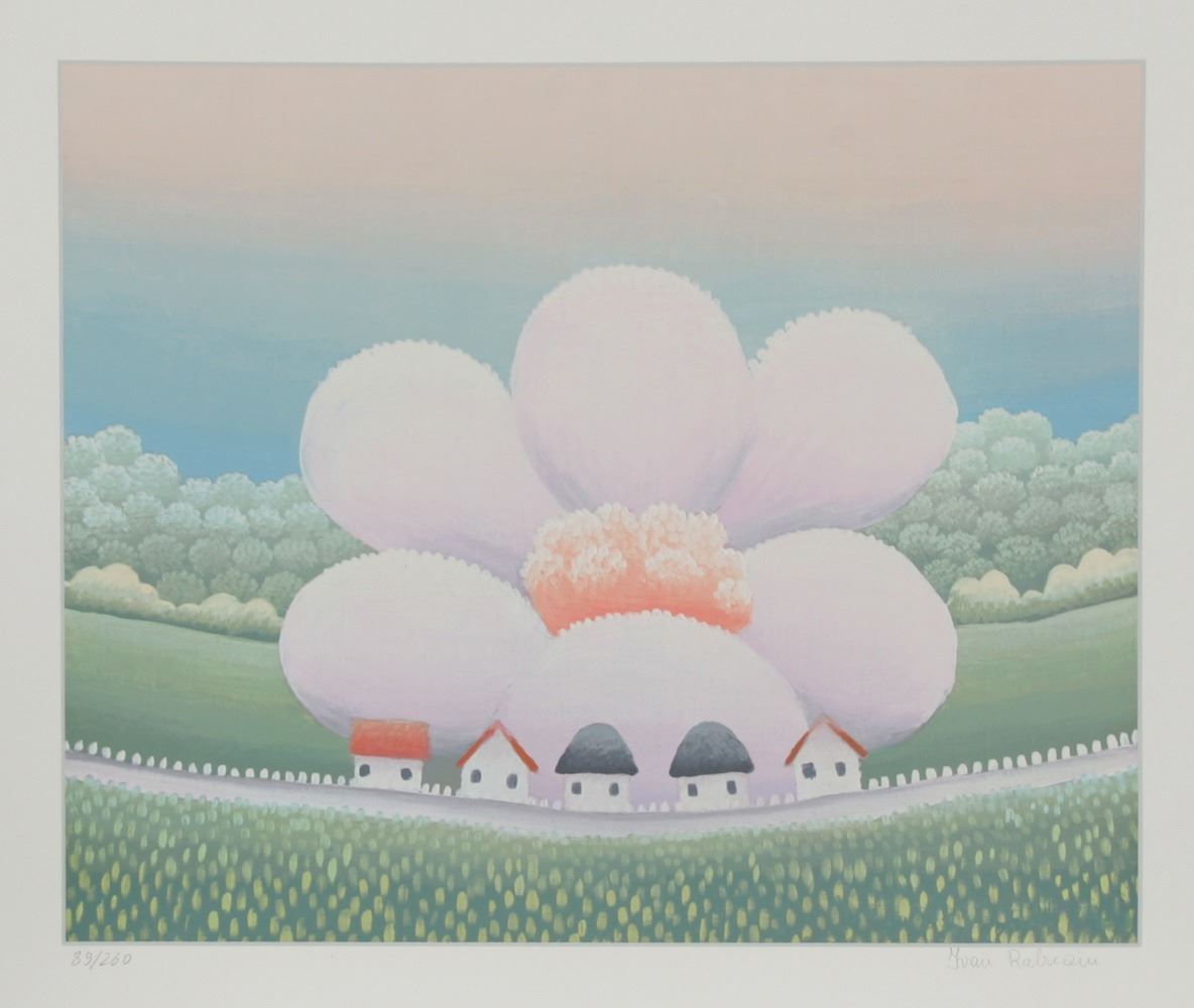 Ivan Rabuzin, Large Flower Behind Village, Serigraph