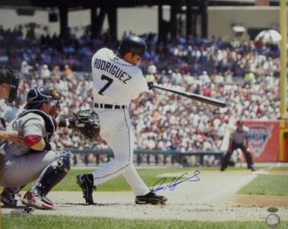 Ivan Rodriguez, nicknamed "Pudge," played for the Texas Rangers, Florida Marlins, Detroit Tigers, New York Yankees, Houston Astros and Washington Nationals. Rodriguez was awarded the AL MVP award in 1999. He is also regarded as one of the best defensive catchers of all time. Rodriguez won the World Series with the Marlins in 2003, and also played in the 2006 World Series while with the Tigers. On June 17, 2009, Rodriguez set a MLB record by catching his 2,227th game, passing Carlton Fisk. During his career, he had the best caught stealing percentage of any major league catcher, at 45.68%. Ivan Rodriguez has hand signed this Detroit Tigers 16x20 Photo Horizontal Batting. Leaf Authentic Hologram and Certificate of Authenticity from Athlon Sports.