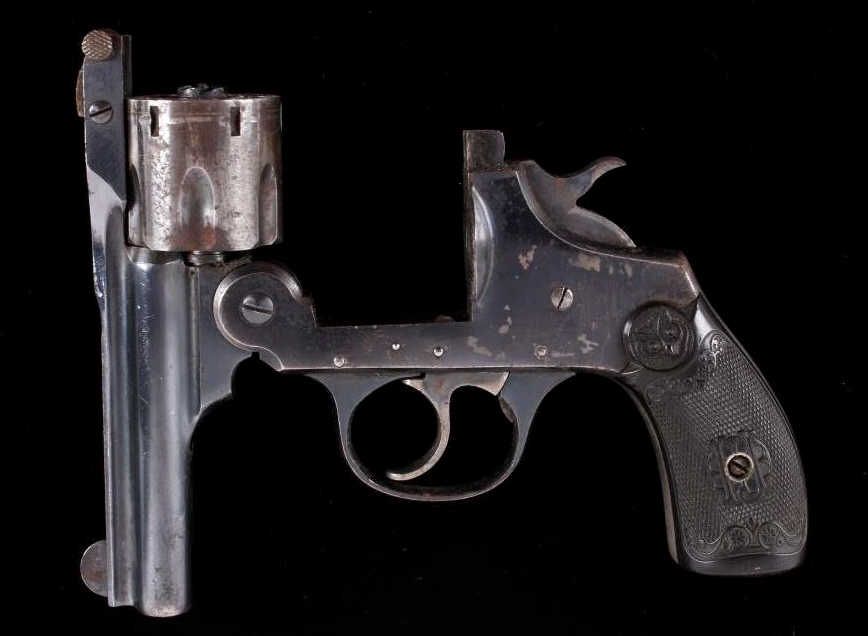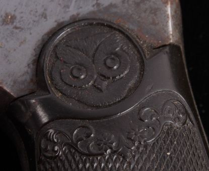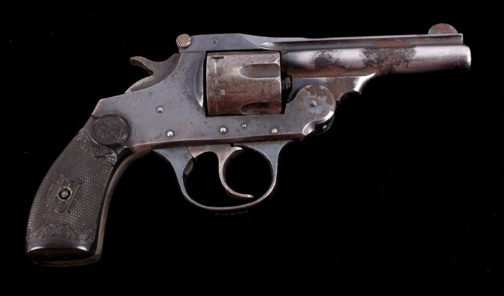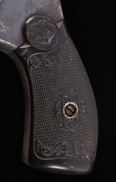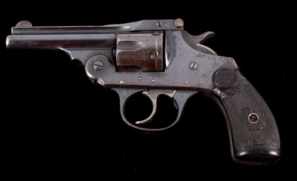 This is an Iver Johnsons Safety Automatic Second Model Hammer Version in a .32 caliber. This is a double action break over handgun in a blued finish. Top of the barrel reads, "Iver Johnsons Arms & Cycle Works Fitchburg, Mass. U.S.A." This has the black early collectible owl grips in great condition. Serial number H69489 and believed to be manufactured in 1900-1905. Gun shows well retained bluing on the left side and the right side barrel shows some wear and slight surface pitting. Firearm does appear to function.