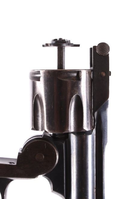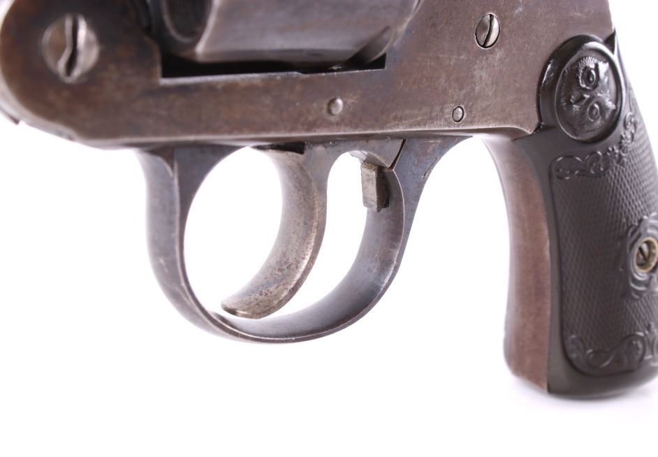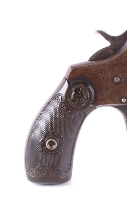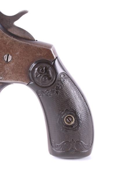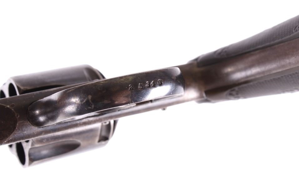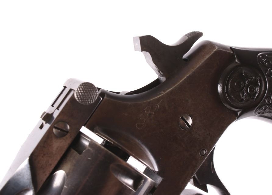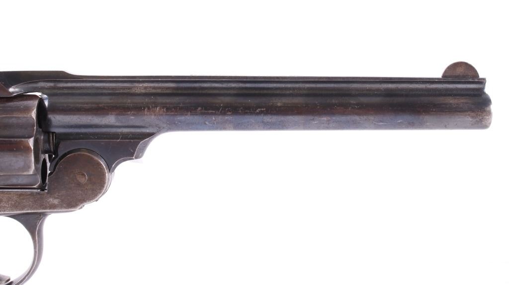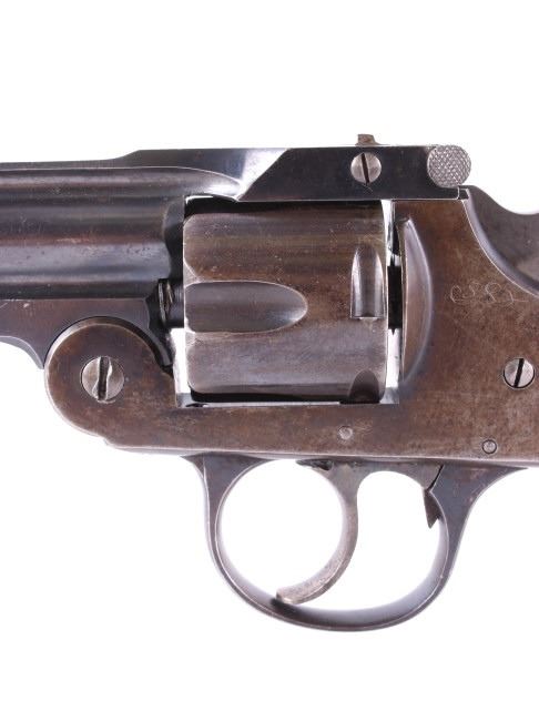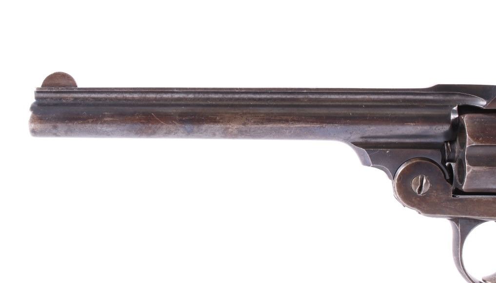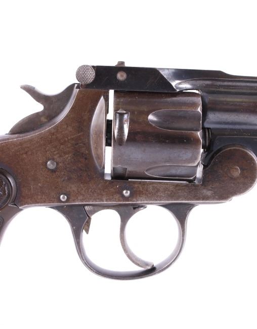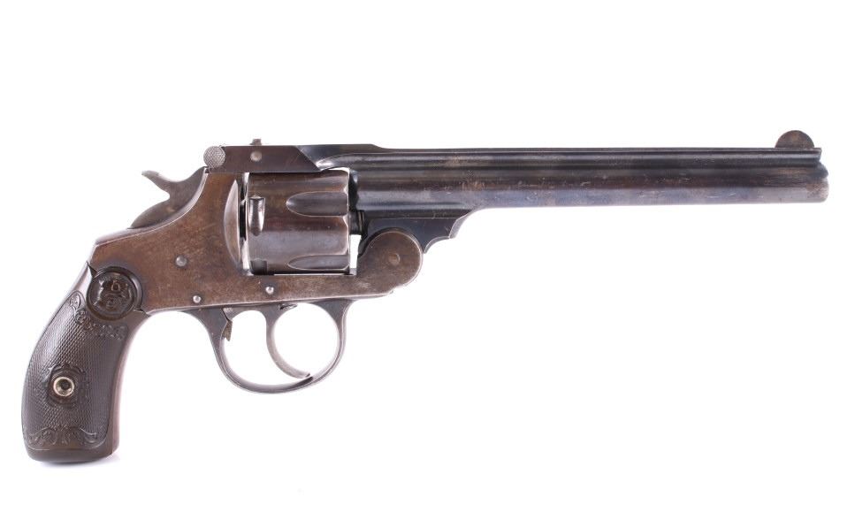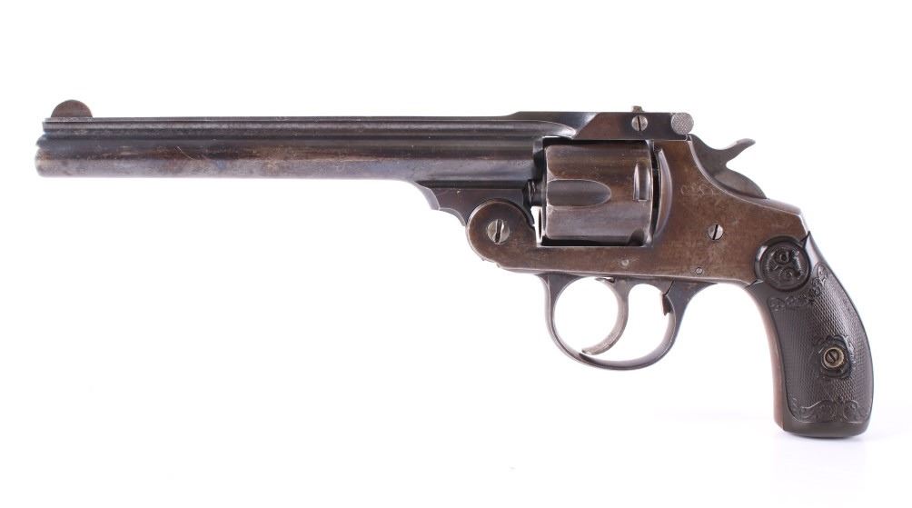 You are bidding on an Iver Johnson Top Break .38 CF double action revolver. The revolver features a 6" solid ribbed barrel, 5 shot cylinder, hard rubber grips, top break action, and blue’d finish. The barrel is stamped "Iver Johnson Arms & Cycle Works - Fitchburg, Mass. USA." This revolver shows good condition, with some patina and wear from use. This pistol features hard rubber grips stamped with their standard owl. Serial number located on under side of the trigger guard and frame. Serial Number: M25348. This is a Curio & Relic firearm. FFL transfer or NICS background check required. Matt
