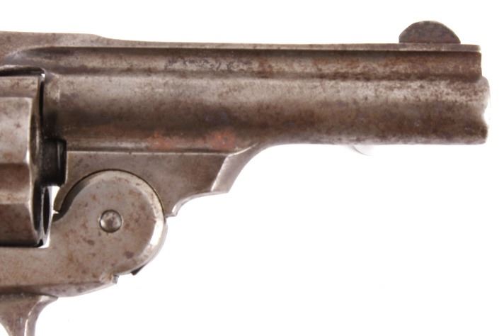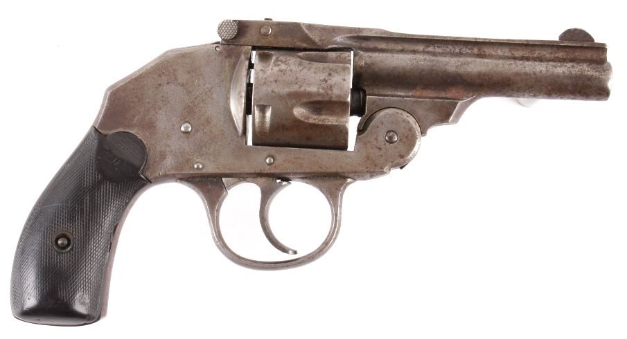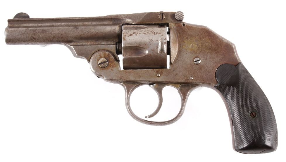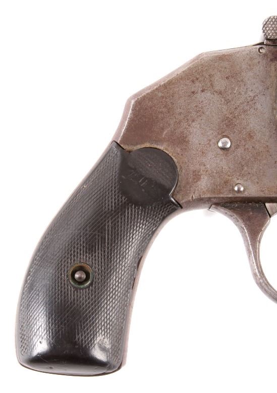 Offered in this lot we have a Iver Johnson Safety Automatic Hammerless Third Model Double Action Revolver chambered in .38 caliber. The revolver features a 3 1/4" barrel, 5-shot break top cylinder, checkered hard rubber grip, nickel finish, and internal hammer. The revolver is marked with its serial number "33825" on the bottom of the trigger guard. The revolver is in good condition overall, with a nickel finish, and good hard rubber grip - the finish shows wear and pitting. Mechanically the action is tight and well timed, The hammer does stick at times. The revolver qualifies as a Curio & Relic Handgun, and requires FFL Transfer or NICS Background Check. Serial Number: 33825