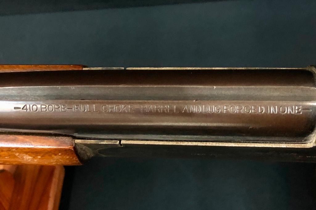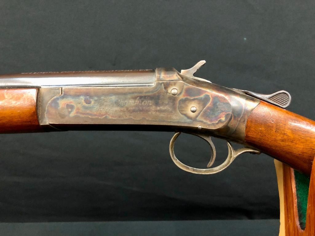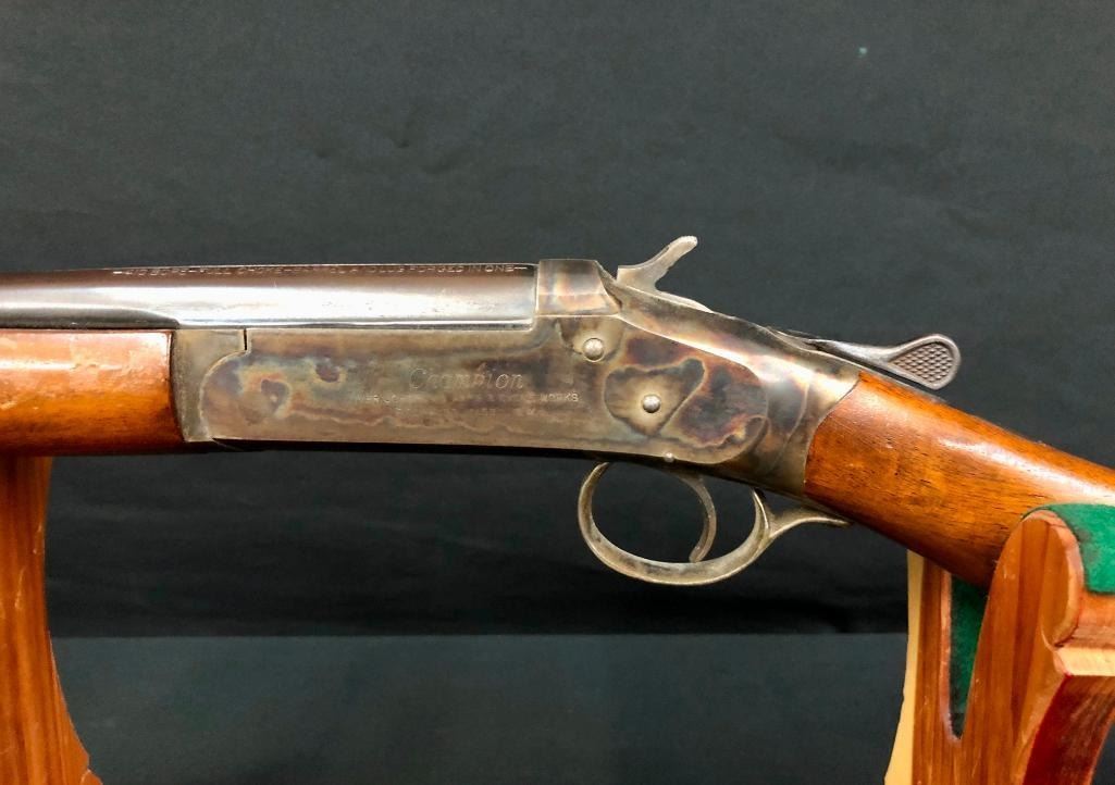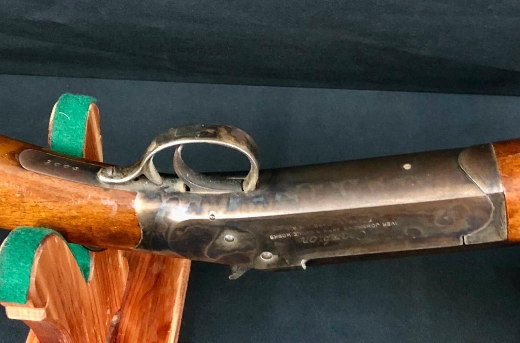 For your collection we offer this Iver Johnson Champion Model .410 gauge single shot shotgun. This shotgun features the classic Champion single shot mechanism with a single action hammer, and a simple yet rugged break action. MAKER: Iver Johnson. Serial No. RBBF. APPROX AGE: Circa 1920. SIZE: Barrel measures 26 inches. CONDITION: Fair for its age, some wear expected. Please look closely at the pictures as they are an important part of our description and are hereby incorporated into the description, specifically with regards to condition. SHIPPING: There will be a $25 handling / packaging fee for shipping this lot. The actual cost of postage will be added on top of that. BUY IT NOW: If you would like to buy this item now, without waiting for the auction day to bid on it, we do offer this option (which is available up to 48 hours before the actual auction starts). The “Buy it Now†price is the high estimate of this lot (plus applicable fees and the Buyer's premium is discounted to 10% when using the Buy it Now option). If you would like to exercise this option, you must contact us by email (or phone as long as you talk to someone live). Reference this lot number and your intention to "Buy it Now." *****This firearm requires an FFL Transfer*****