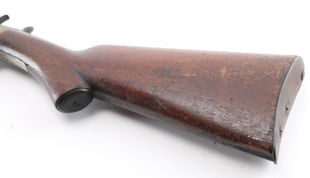 FAIR: Some major parts replaced; minor replacement parts may be required; metal rusted, may be lightly pitted all over, vigorously cleaned or re-blued; rounded edges of metal and wood; principal lettering, numerals and design on metal partly obliterated; wood scratched, bruised, cracked or repaired where broken; in fair working order or can be easily repaired and placed in working order.