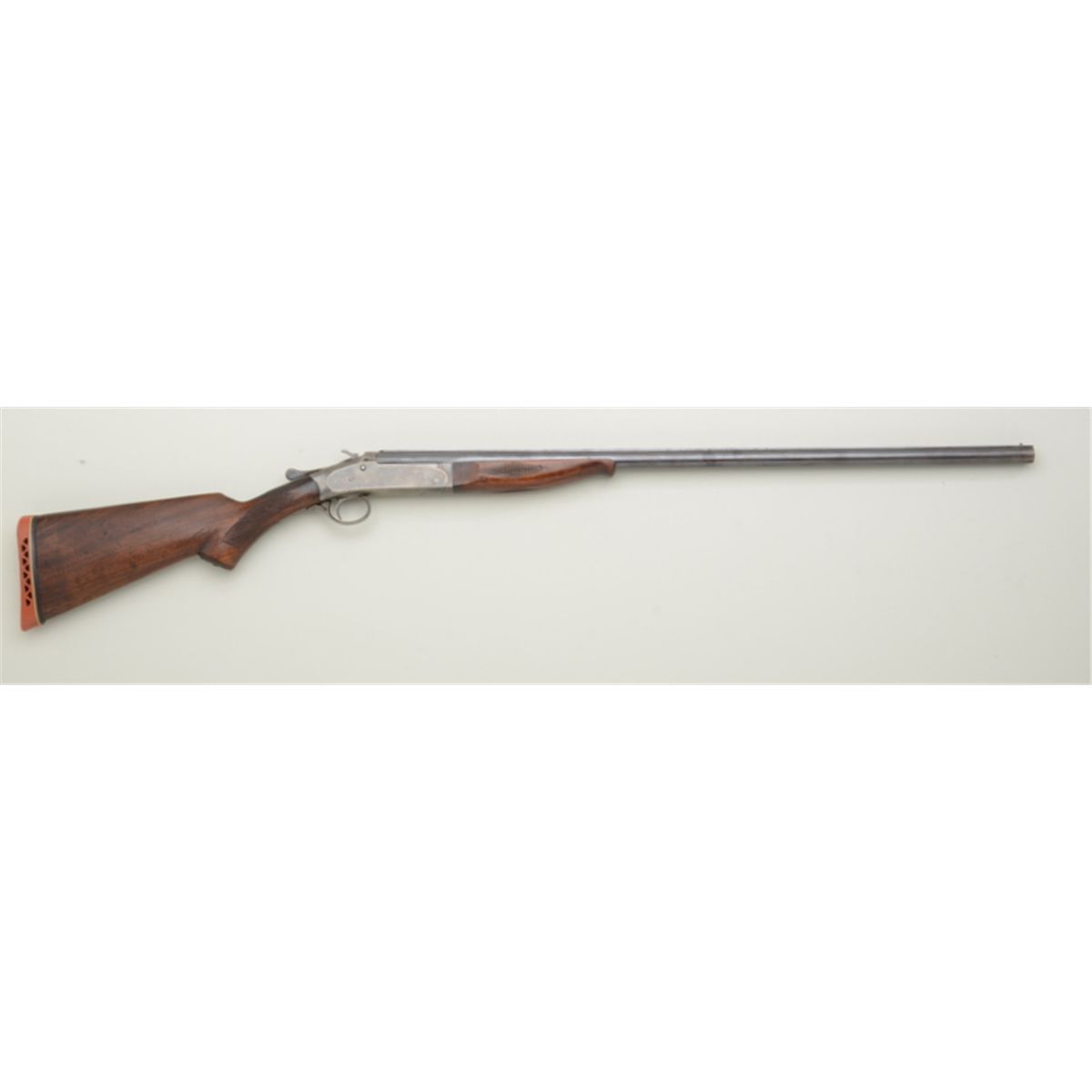 Iver-Johnson Champion 16 gauge single barrel shotgun, improved modified choke, 30" barrel, non-ventilated rib added, good condition, normal wear, 50% finish, recoil pad added, tight action, good bore. Estimate: $75 -150
