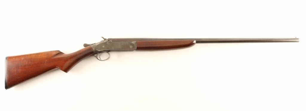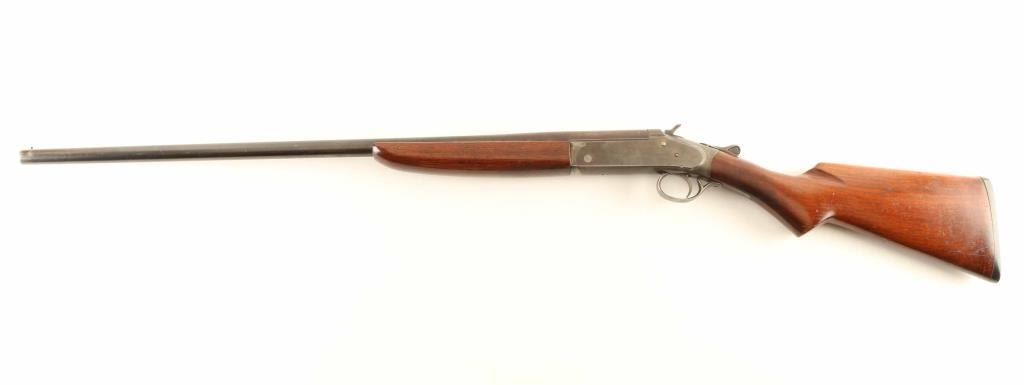 Vintage single barrel break-action shotgun chambered for 20 gauge shells, manufactured circa 1909-1956. Features a blued 28" barrel, brass bead front sight, automatic ejector, smooth trigger, knurled hammer spur, knurled top lever, case hardened receiver, smooth walnut forend and semi-pistol grip shoulder stock with factory buttplate. The serial 'number' "RHHC" is found on the lower tang, forend, forend metal and barrel lug. The barrel retains approximately 30% original bluing with the balance turned to brown patina and the receiver bear a mostly grey patina with traces of case colors in the protected areas. Action performs well, the bore is excellent and the wood stocks are very good. Condition is NRA Good. ***C&R Firearm***