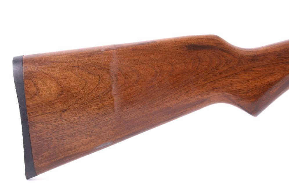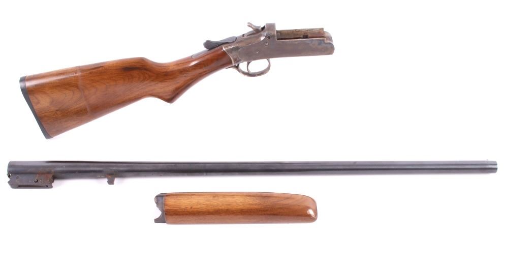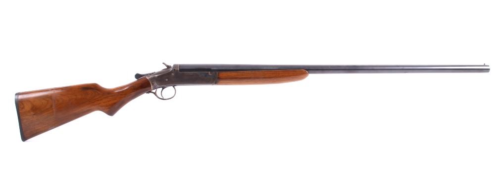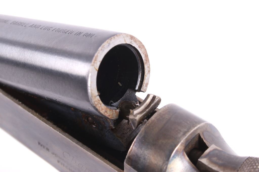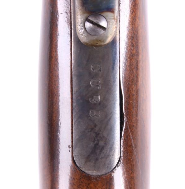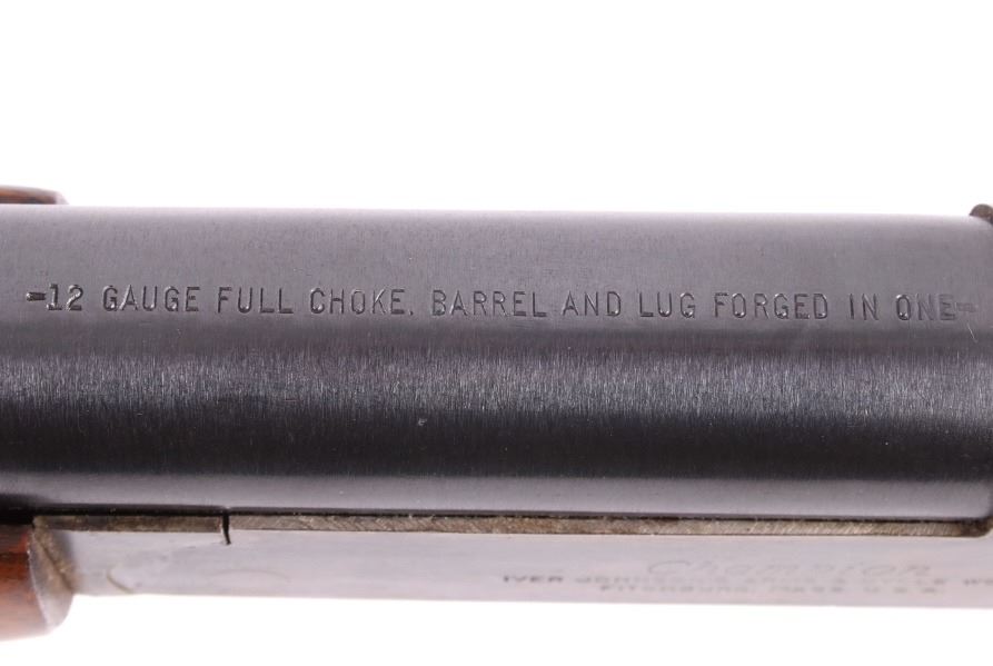 Provided for bidding in this lot is an Iver Johnson Champion, Single-Shot shotgun, chambered for 12 gauge. The shotgun was manufactured between 1940-56. The shotgun has a 30" blue'd barrel, walnut fixtures, and a case hardened receiver. The shotgun is marked in numerous places, reading; "Champion - Iver Johnson Arms & Cycle Works - Fitchburg. MASS. U.S.A." on the left side of the receiver, "-12 GAUGE FULL CHOKE. BARREL AND LUG FORGED IN ONE" on the top of the barrel, and serial number "CUBB" on the lower tang, and on the inside of the fore-grip. The shotgun shows good mechanical and aesthetic condition overall. The plastic owl butt-pad is absent of cracks, and the blue and case hardened finish show good retention. The butt-stock does show some subtle wear. Mechanically, the shotgun has a solid hammer and trigger, as well as a strong case extractor. The shotgun qualifies as a Curio & Relic Long Gun, and requires FFL Transfer or NICS Background Check. Serial Number: CUBB.
