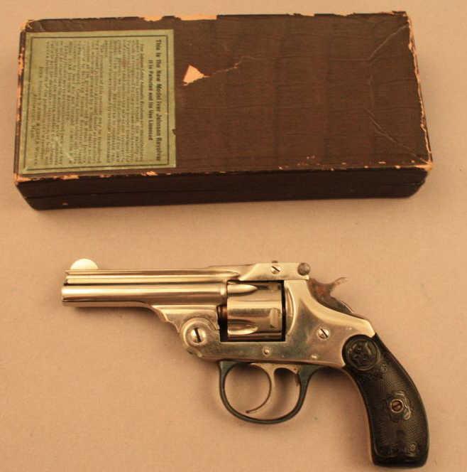Iver Johnson DA top-break revolver, .32 cal., 3” barrel, nickel finish, black hard rubber grips, #