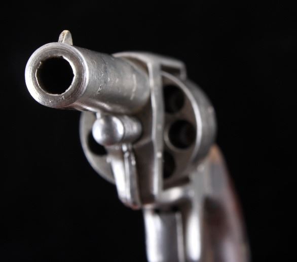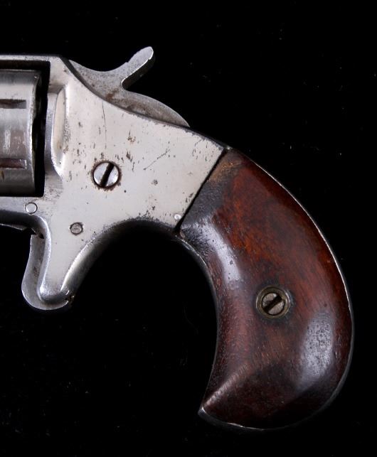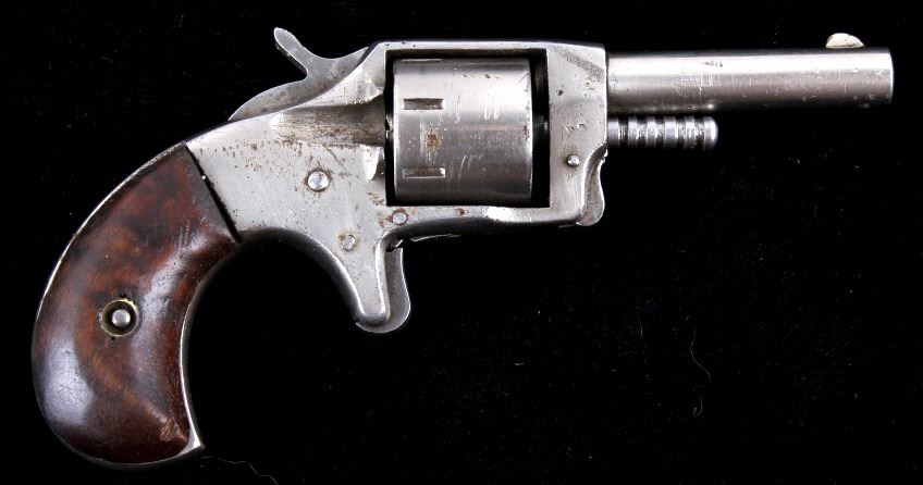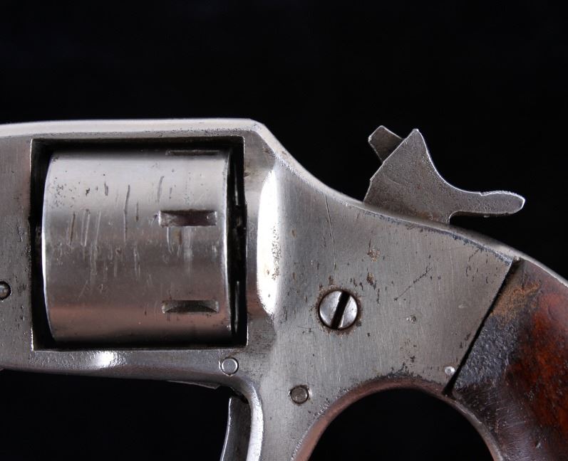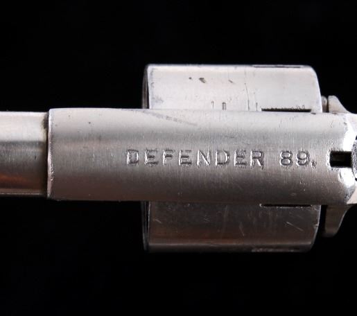 Offered in this lot we have a Iver Johnson Defender 89 revolver chambered in .22 rim fire cartridge. The revolver features a 2 1/4" barrel, seven-shot pin pull cylinder, spur trigger, lastly, it shows a walnut grip. The revolver is marked "Defender 89." on the top of the frame. The revolver is in good condition overall, showing fair bores, with some pitting, the finish is in good condition, as is the walnut handle - the finish does show some dents, wear, and some pitting. Mechanically the revolver is in working order, with a tight action, and the cylinder lock is in good condition.