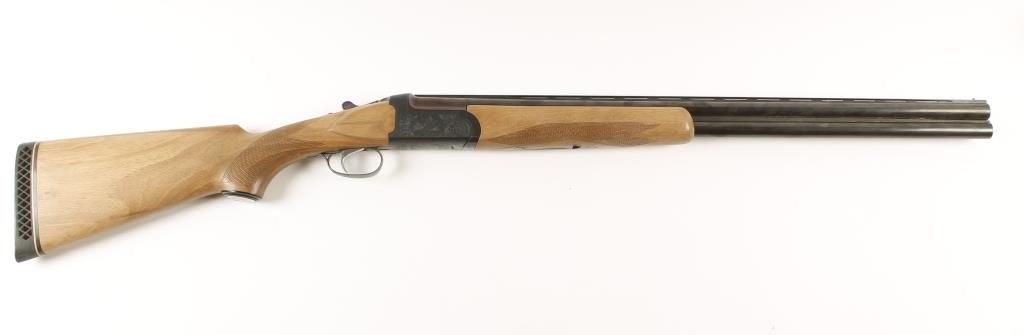 Italian made over/under greener cross bolt shotgun. 27-11/16" barrels (separated at the muzzles and back into the fore stock). Ventilated top rib. Single bead at the muzzle. The bores are filthy and possibly scored. Built on a mono-block. Single inertia select trigger. Action works well. The blonde wood shows dings on the fore stock and wear to the checkering on both the butt stock and the fore stock. There is a Pachmayr recoil pad that is a little too large for the butt. Engraved with floral scrolls and pheasant, rabbit and a raptor scenes. Condition: Good mechanically but with separated barrels and good cosmetically. *Modern Firearm*