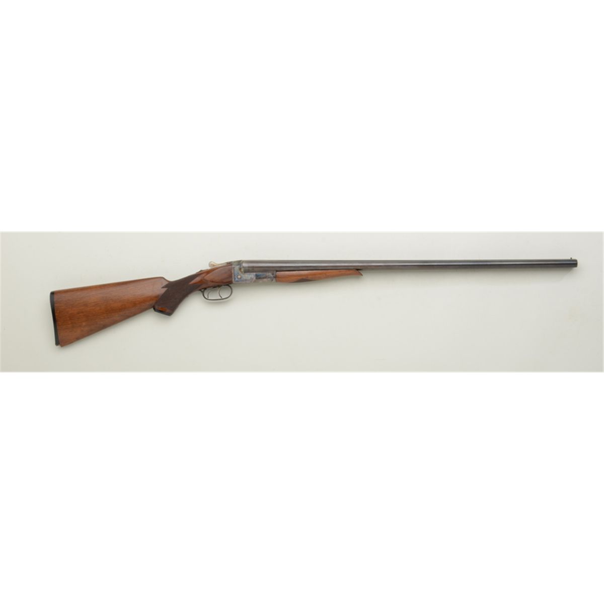 Iver-Johnson Hercules Grade SxS concealed hammers shotgun, .20 gauge, 28” barrels, blue and case hardened finish, checkered wood stock, #18728. This gun is in overall very good condition showing a plum brown patinafinish to the barrels and considerable original case colors on the receiver, very good to fine bores, crisp actions, very good wood stocks. Est.: $75-$150.
